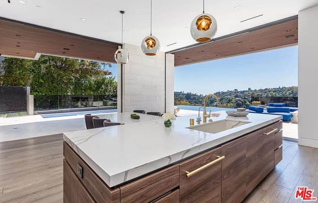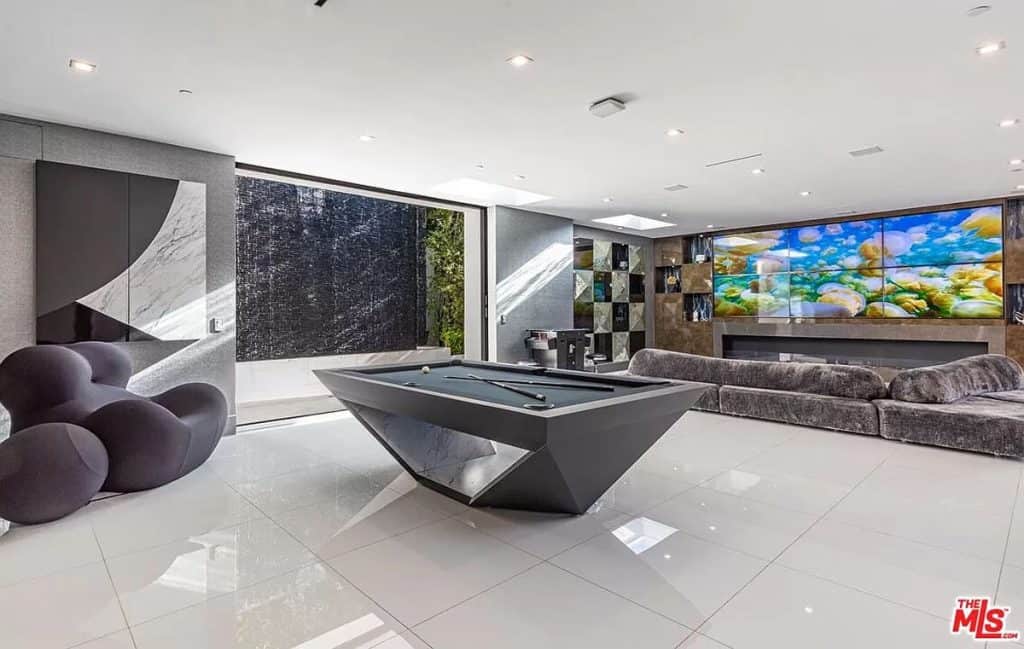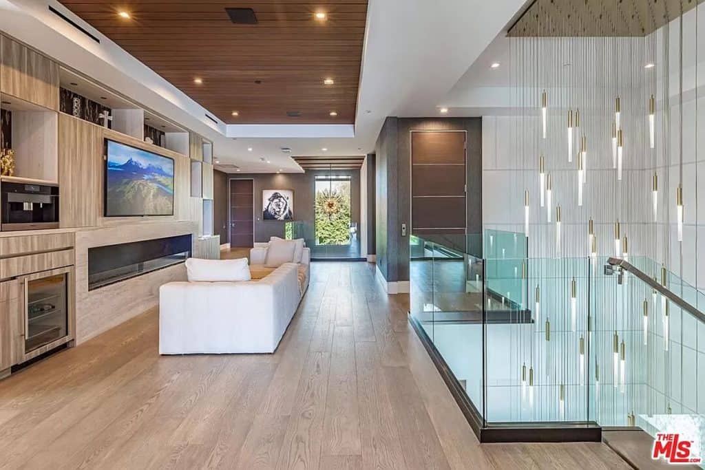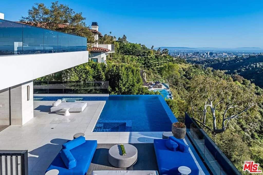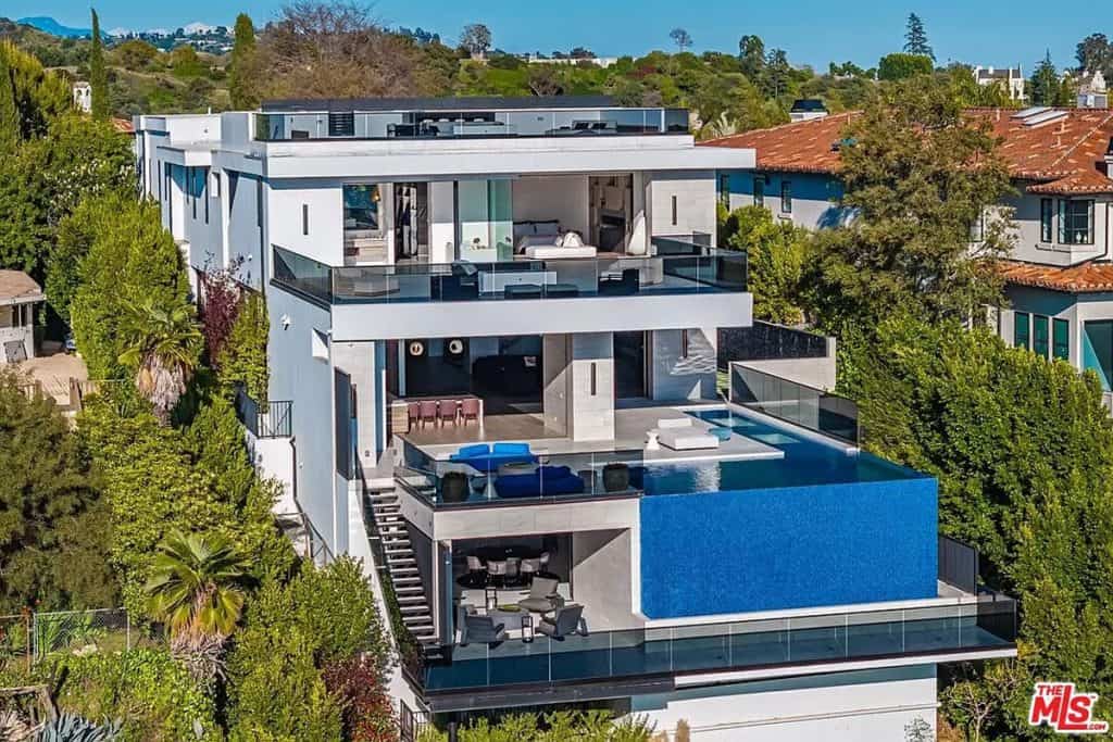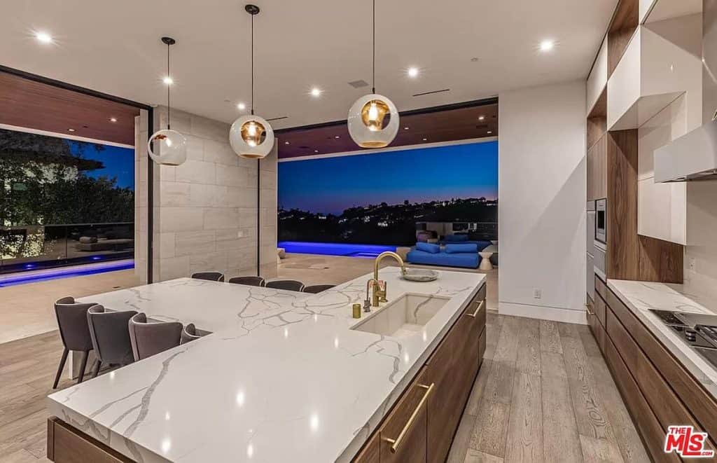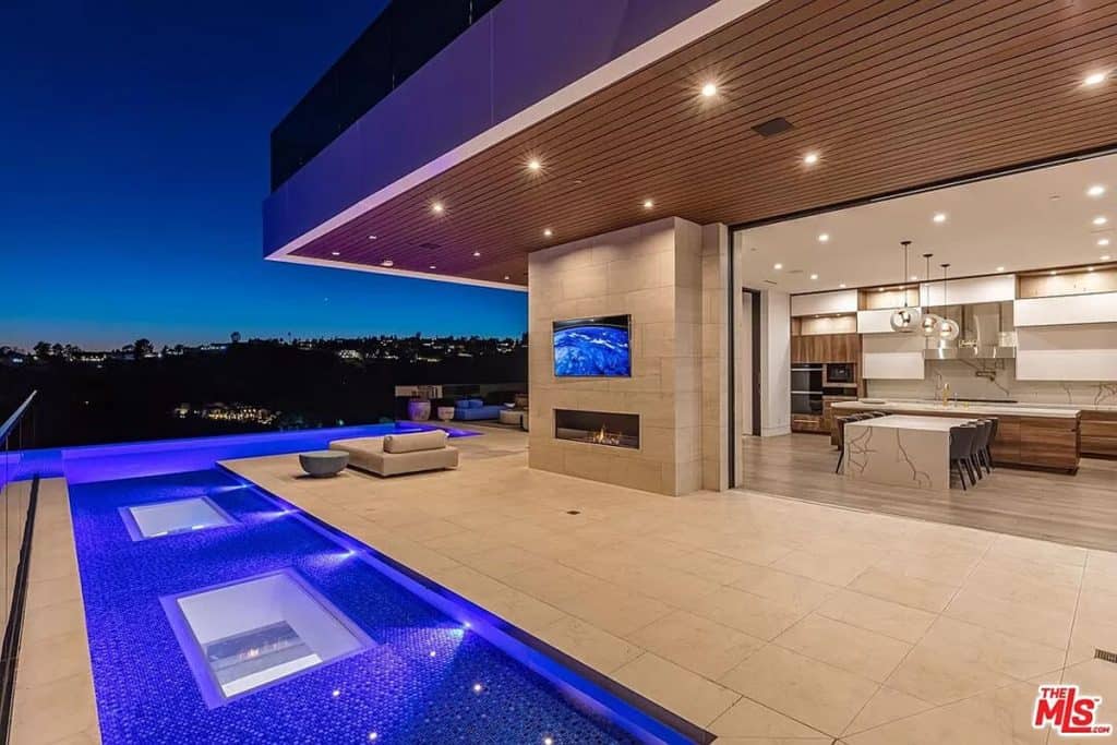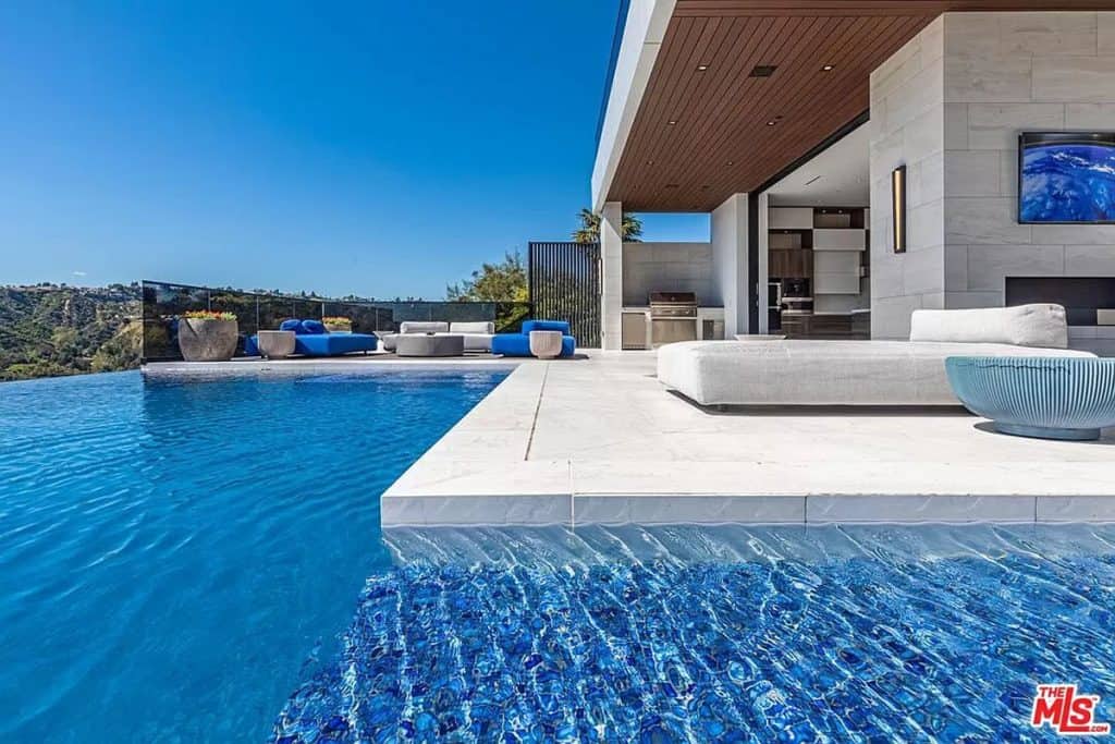 This magnificent property stands out from the usual modern design with its cozy finishes and luxurious textures. The impressive front entrance infinity pool calls out to you, leading to a spacious, light-filled open floor plan decorated with custom flooring, extravagant lighting, and expansive views. The main floor is a showcase of extravagance, featuring a chef’s kitchen, a dual-sided tropical fish tank, a unique indoor waterfall, and a massive 30-foot chandelier. The seamless flow from breathtaking interiors to the captivating outdoor areas reveals a stunning sight – a glass-bottom infinity pool with a cascading waterfall, creating an unparalleled atmosphere. The residence culminates in a lavish primary suite with a private deck, topped off by a sprawling rooftop retreat complete with a picturesque bar and fire pit, offering stunning views of the ocean, city, and canyon. Taking entertainment to a whole new level, the lower level boasts a glowing onyx bar, a top-notch movie theater, a spacious gym, and a meticulously designed wine cellar, resulting in a captivating sanctuary with panoramic city views from the lower deck.