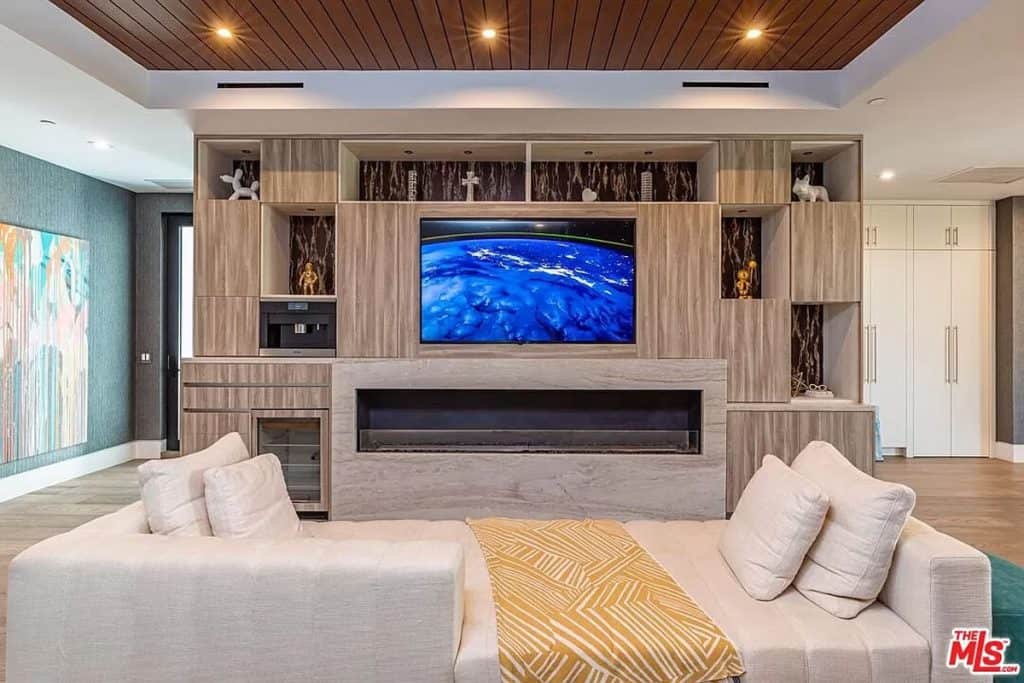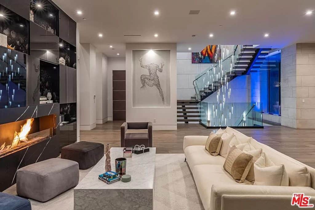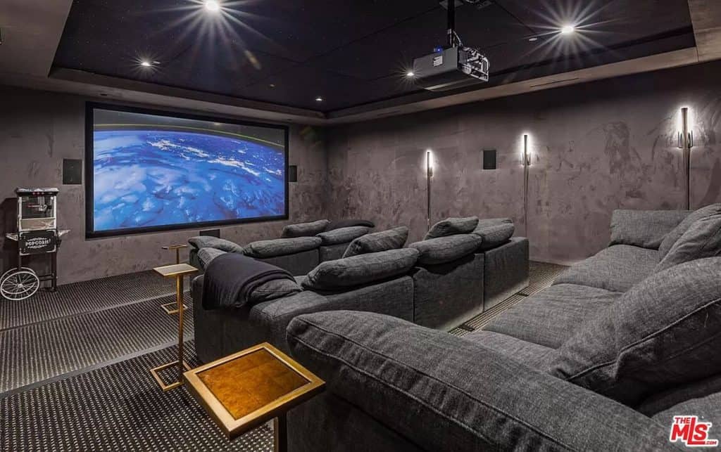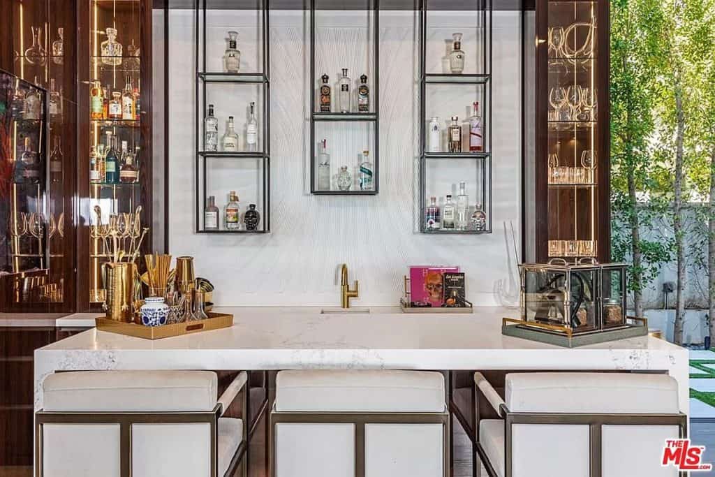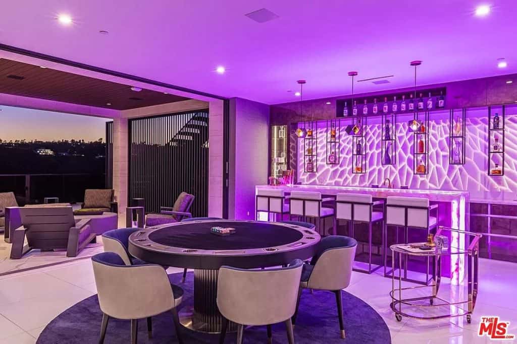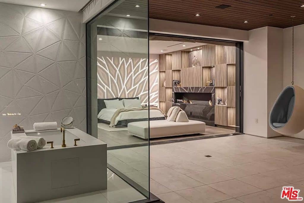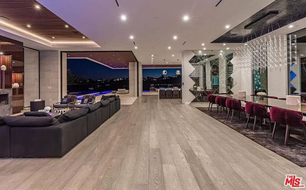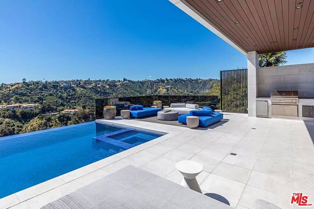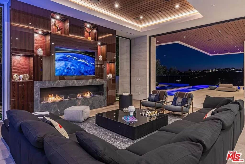 This magnificent property stands out from the usual modern design with its cozy finishes and luxurious textures. The impressive front entrance infinity pool calls out to you, leading to a spacious, light-filled open floor plan decorated with custom flooring, extravagant lighting, and expansive views. The main floor is a showcase of extravagance, featuring a chef’s kitchen, a dual-sided tropical fish tank, a unique indoor waterfall, and a massive 30-foot chandelier. The seamless flow from breathtaking interiors to the captivating outdoor areas reveals a stunning sight – a glass-bottom infinity pool with a cascading waterfall, creating an unparalleled atmosphere. The residence culminates in a lavish primary suite with a private deck, topped off by a sprawling rooftop retreat complete with a picturesque bar and fire pit, offering stunning views of the ocean, city, and canyon. Taking entertainment to a whole new level, the lower level boasts a glowing onyx bar, a top-notch movie theater, a spacious gym, and a meticulously designed wine cellar, resulting in a captivating sanctuary with panoramic city views from the lower deck.