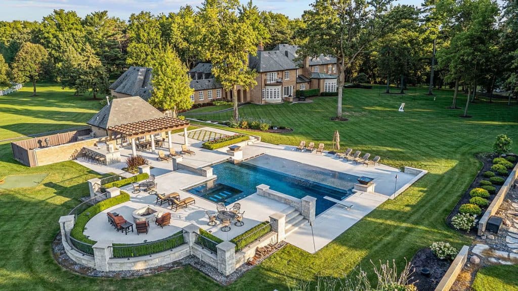 At the center of the estate stands a grand 10,000+ sq ft English manor, carefully renovated from the ground up to merge contemporary sophistication with rustic appeal. The chef’s kitchen shines with marble countertops and top-of-the-line appliances, while the primary suite includes a private balcony with expansive views and a spa-like bathroom. Designed for luxurious living and entertaining, the home features a great room, media room, billiards room, wine cellar, golf simulator, and home theater. An impressive infinity pool, elegant patio, and pool house create a resort-style escape, while a sports court is perfect for both pickleball and basketball. Equestrian lovers will truly enjoy the horse barn featuring six stables, along with an attached garage that can accommodate up to 20 vehicles or off-road toys. Outside, you will also discover a private shooting range, a chipping golf range, and a picturesque 3-acre pond, perfect for fishing or leisurely cruising with an electric boat.