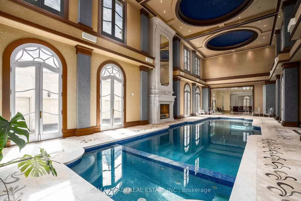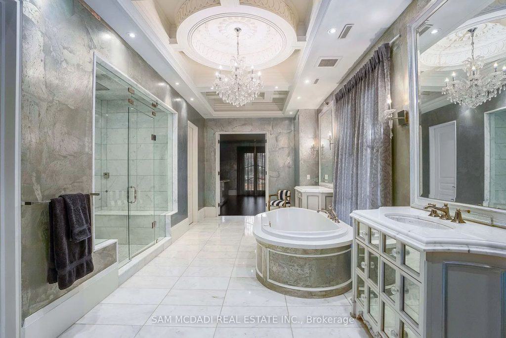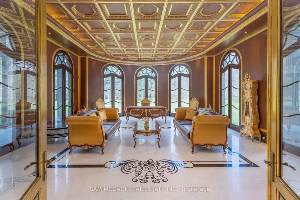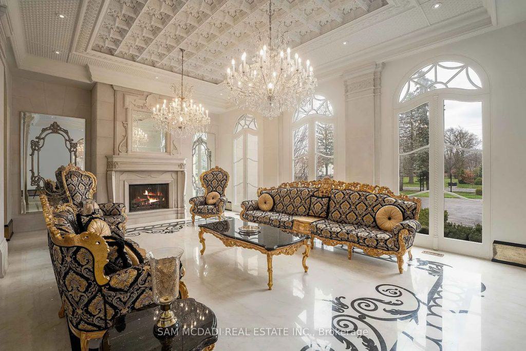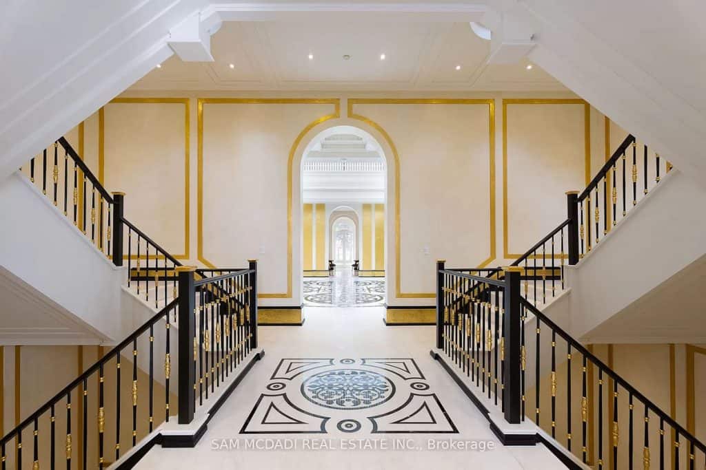 Step into the enchanting Saint George Mansion, your personal luxurious haven nestled on the prestigious Doulton Estates in Mississauga. Enclosed by elegant wrought-iron gates and resting on a secluded 2-acre lot, this magnificent 25,880 square foot chateau is the masterpiece of the acclaimed Ferris Rafauli! The stunning Parisian-inspired interiors exude opulence at every corner, featuring heated marble floors, exquisite craftsmanship adorned with 14-carat gold accents, mirror inlays, expansive living areas, and lavish fireplaces that create a cozy and welcoming atmosphere throughout. Head upstairs to discover what the Ritz Paris would refer to as your ‘Suite Mansart.’ Here, you’ll find a cozy private seating area complete with a gas fireplace, dual walk-in closets, luxurious his and her 4-piece ensuites, and a charming secluded balcony that offers stunning views of the private grounds. Set off on an extraordinary adventure and discover this exceptional experience featuring 7 opulent bedrooms, 14 bathrooms, a stunning 3-tier theater room with Lamborghini leather seating, a spa, a bar that leads to a private nightclub, an expansive indoor in-ground pool, and much more.