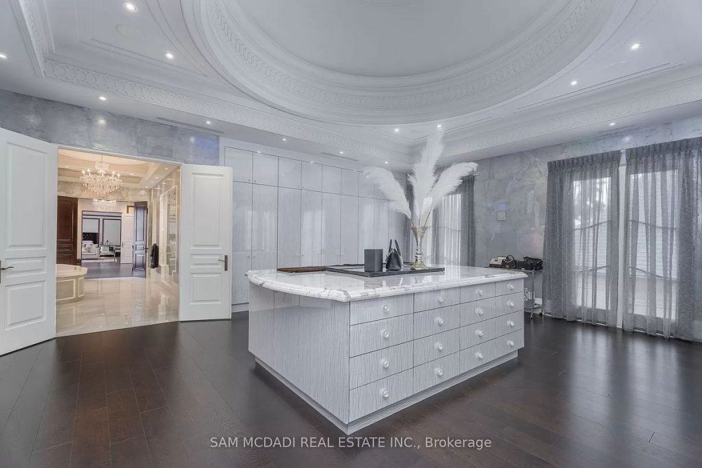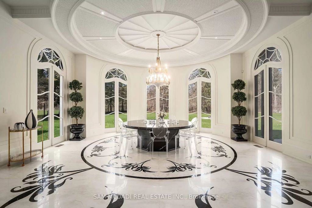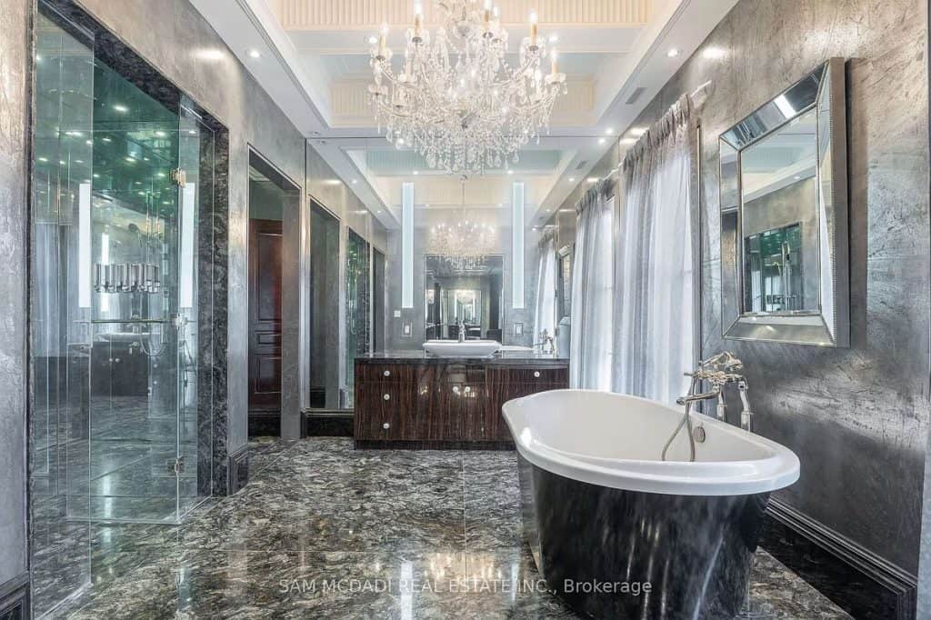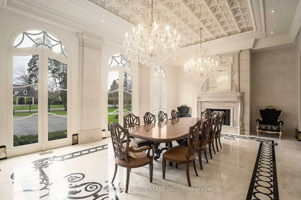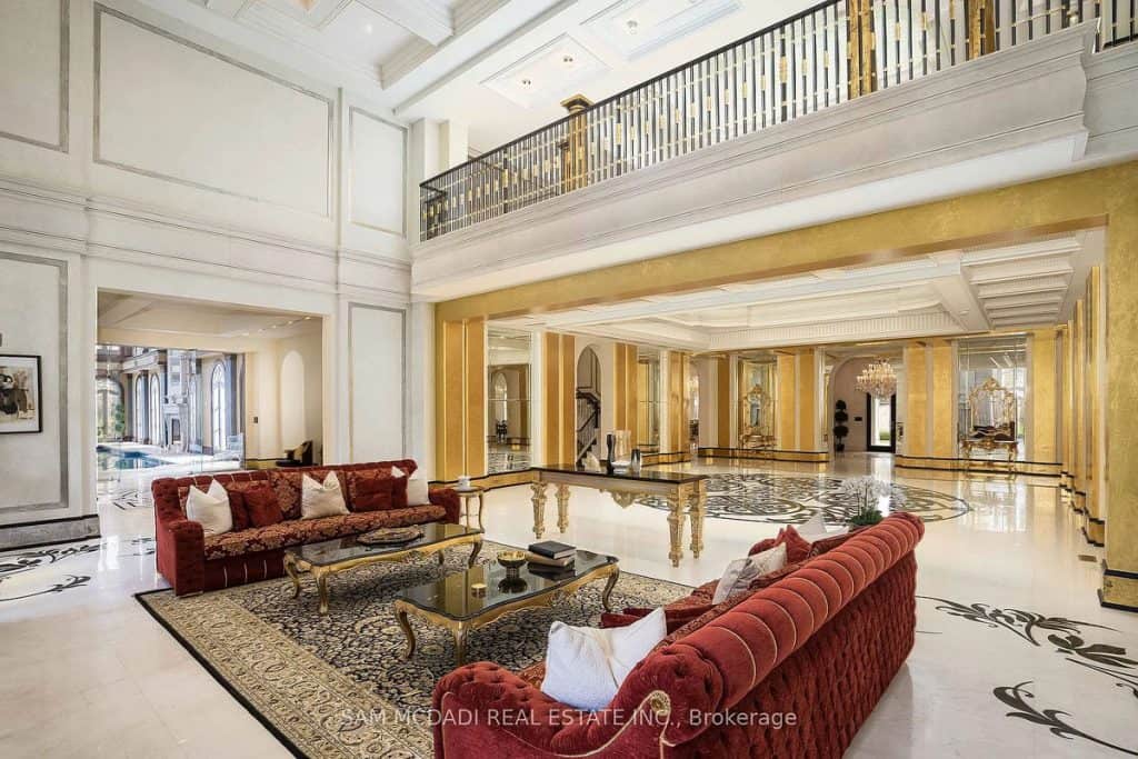 Step into the enchanting Saint George Mansion, your personal luxurious haven nestled on the prestigious Doulton Estates in Mississauga. Enclosed by elegant wrought-iron gates and resting on a secluded 2-acre lot, this magnificent 25,880 square foot chateau is the masterpiece of the acclaimed Ferris Rafauli! The stunning Parisian-inspired interiors exude opulence at every corner, featuring heated marble floors, exquisite craftsmanship adorned with 14-carat gold accents, mirror inlays, expansive living areas, and lavish fireplaces that create a cozy and welcoming atmosphere throughout. Head upstairs to discover what the Ritz Paris would refer to as your ‘Suite Mansart.’ Here, you’ll find a cozy private seating area complete with a gas fireplace, dual walk-in closets, luxurious his and her 4-piece ensuites, and a charming secluded balcony that offers stunning views of the private grounds. Set off on an extraordinary adventure and discover this exceptional experience featuring 7 opulent bedrooms, 14 bathrooms, a stunning 3-tier theater room with Lamborghini leather seating, a spa, a bar that leads to a private nightclub, an expansive indoor in-ground pool, and much more.