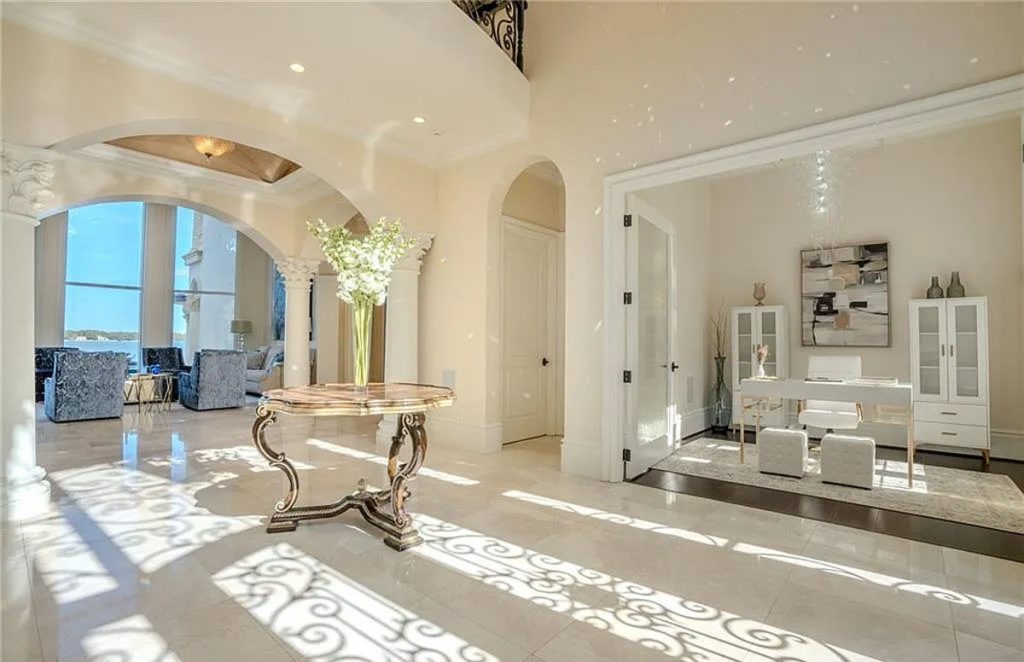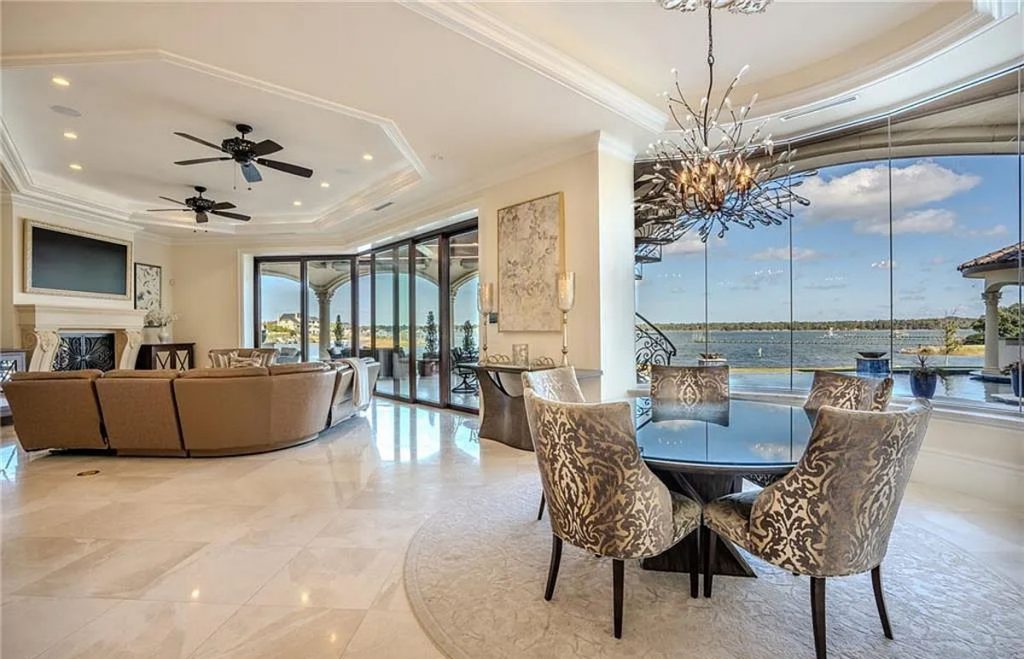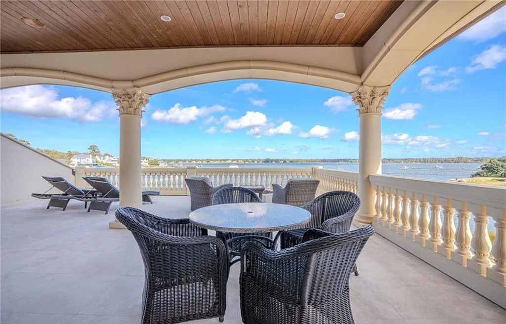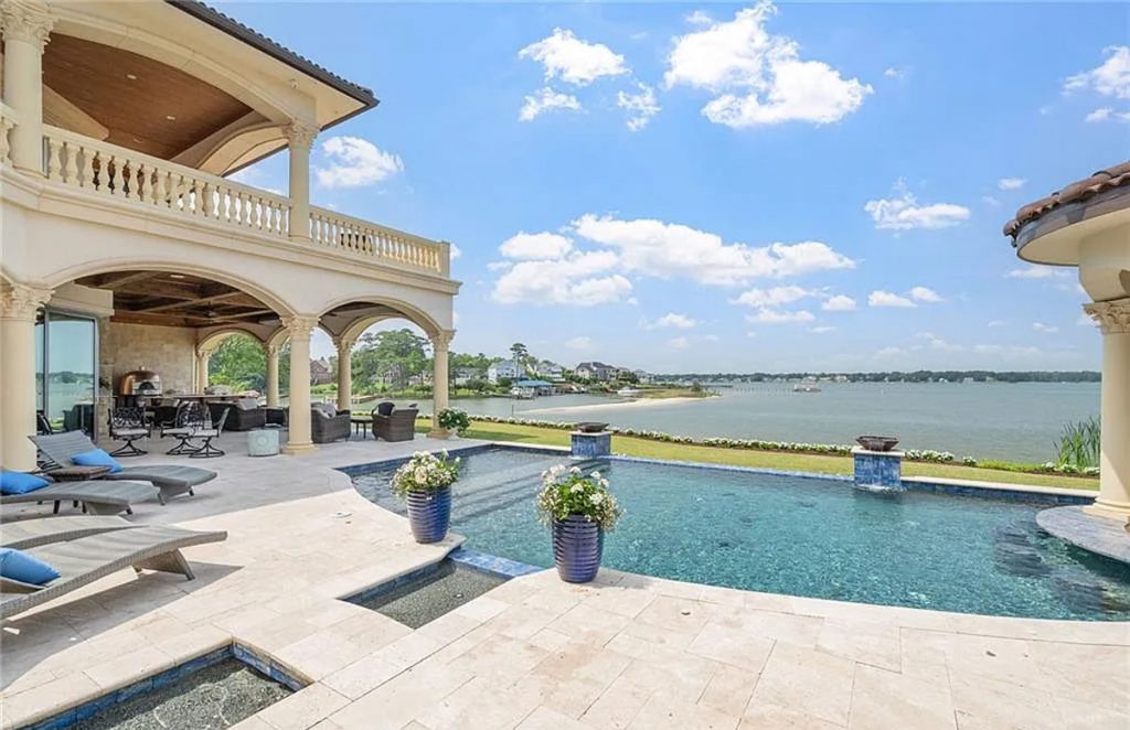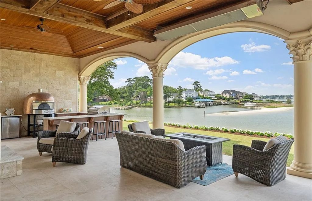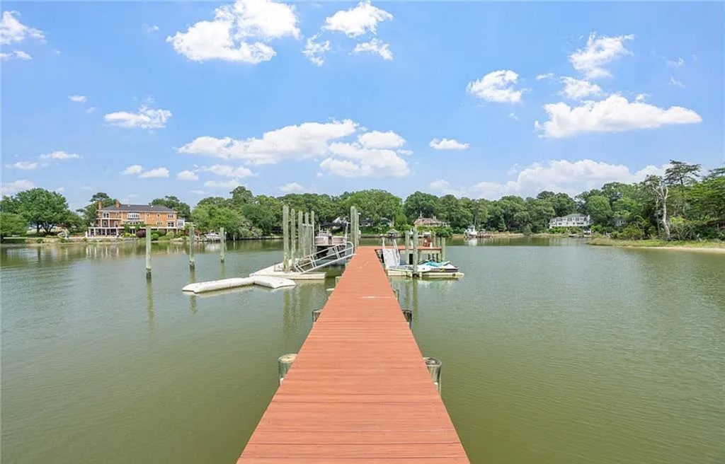 This magnificent estate boasts 6 bedrooms, 7 bathrooms, hydronic heating and cooling, along with 4,000 sq ft of outdoor living space, which includes a gas-heated saltwater pool, panoramic sliding doors, and a covered lanai equipped with commercial-grade heating. The deep-water dock features a boat lift, a jet ski dock, and a 7-ft draw at low tide for easy access to Chesapeake Bay. Notable highlights include a billiards room with 14-ft coffered ceilings, a wine cellar, a theater, a Marra Forni pizza oven, a whole-house generator, a limestone fireplace, and Corinthian columns. Outside, you can appreciate a stone paver driveway, a 3-car garage with epoxy flooring, and 1,000 ft of private beach.