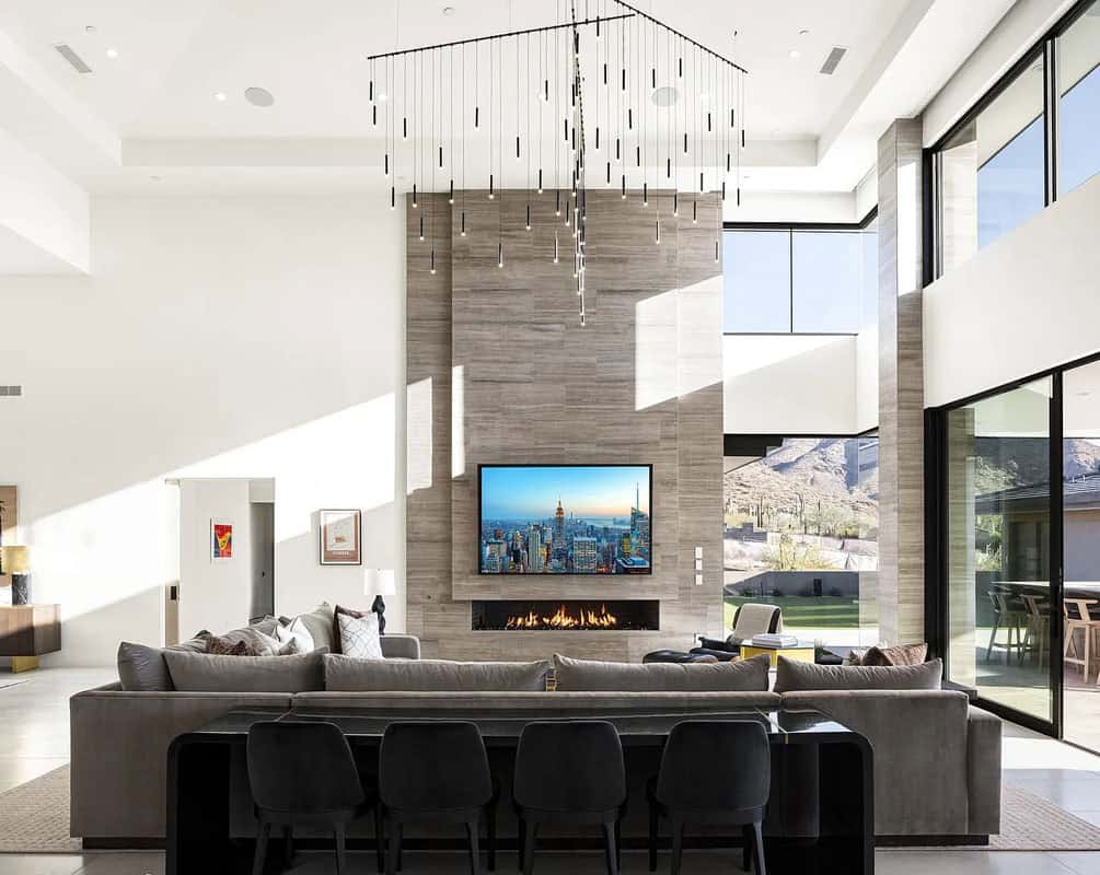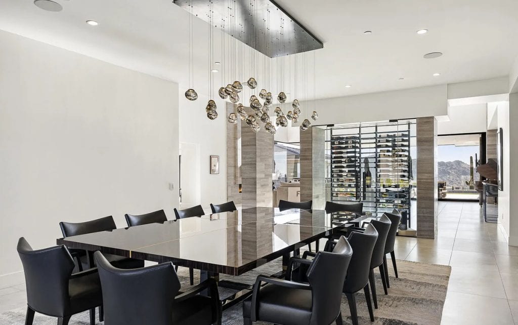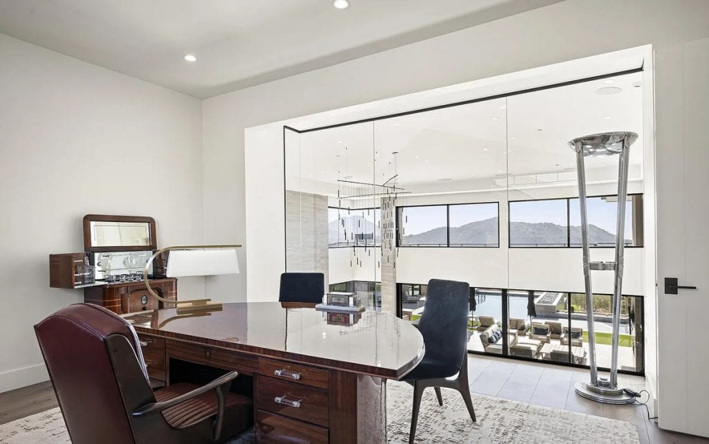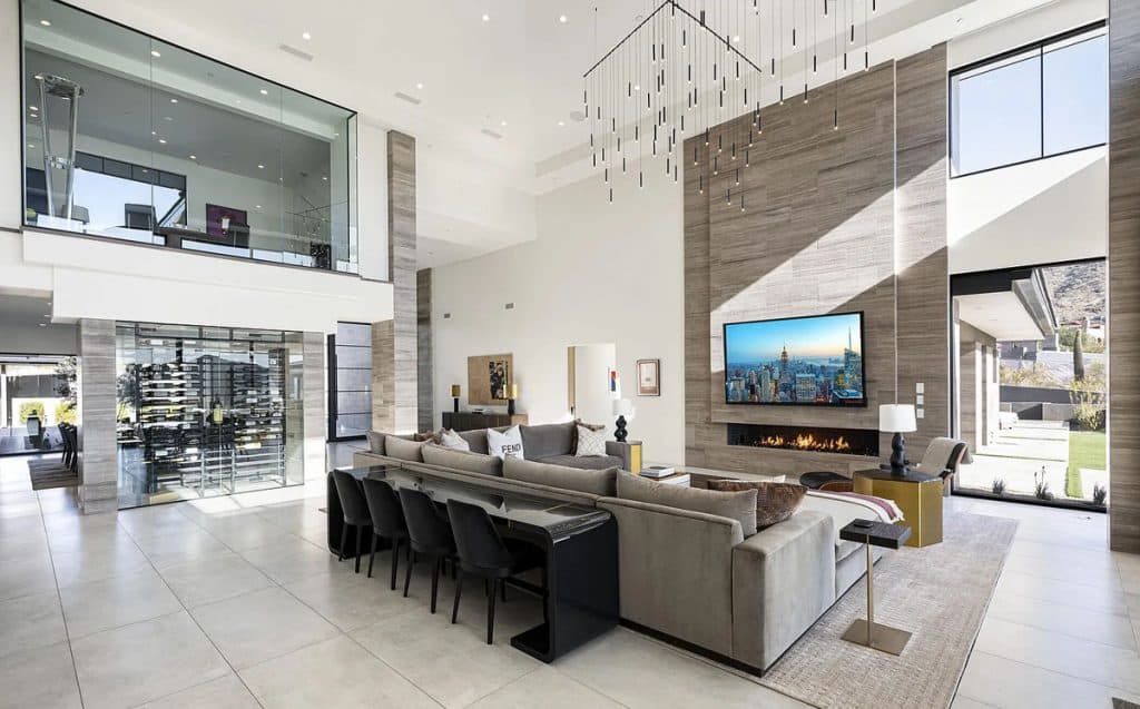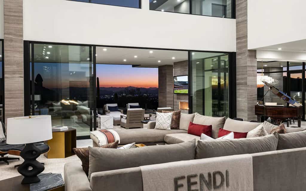Nestled within the guard-gated community of Silverleaf in the prestigious Upper Canyon, this property boasts breathtaking views and encompasses 15,378 square feet. It includes 2 offices, a theater, a gym, a sports court, a golf simulator, and a cold plunge. The majority of the home is situated on the main floor, making it easily accessible with no steps. This level features the primary bedroom and provides direct access to the backyard, guest house, and an impressive 11 garages! With exquisite craftsmanship and meticulous attention to detail, this residence embodies luxury and modern design.