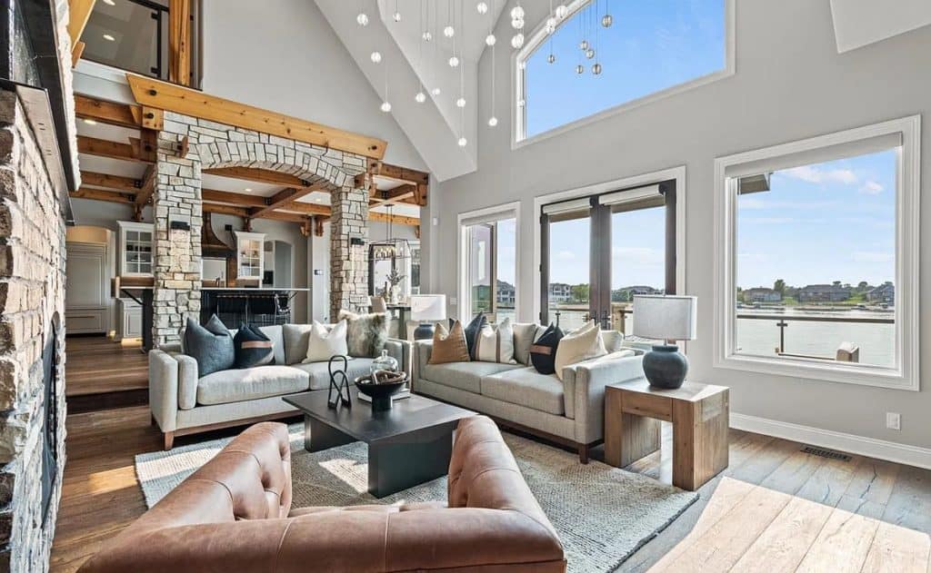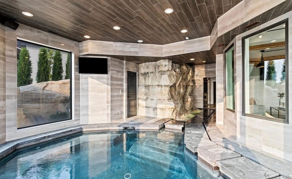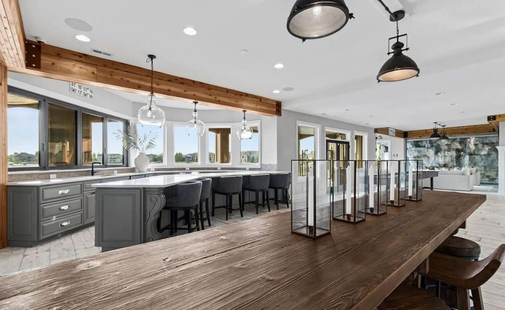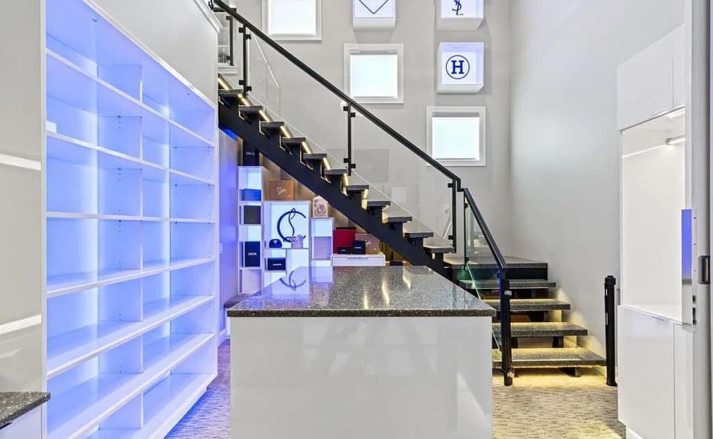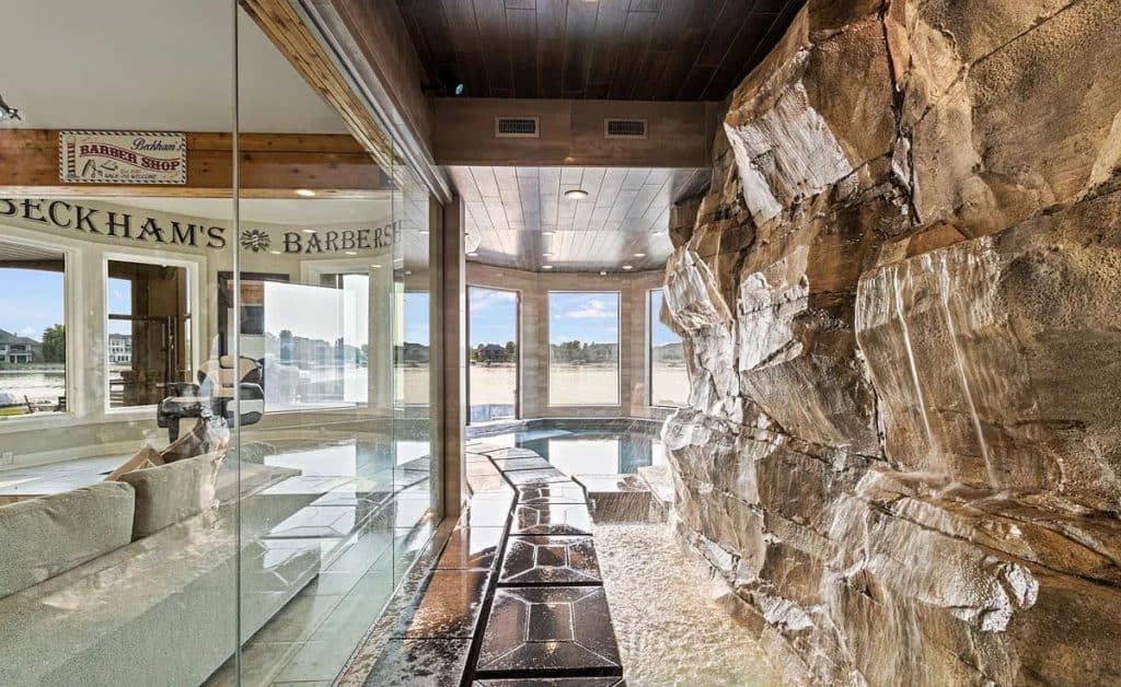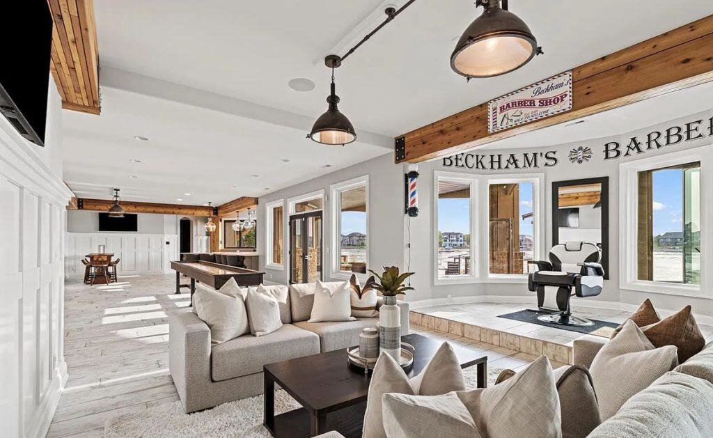 Car lovers will appreciate the 7-car garage, while culinary enthusiasts will delight in the kitchen fitted with top-of-the-line appliances. Get ready to be wowed by the never-before-seen primary suite, a genuine retreat that offers unmatched luxury. It comes complete with a private gym, access to a biometric gun safe, and a personal elevator. Each of the 5 bedrooms boasts its own en-suite bathroom, guaranteeing comfort and privacy for all. If you’re looking for an active lifestyle, you’ll love the half basketball court that leads to a secluded loft area, providing a peaceful space for relaxation or the ultimate play zone. Host gatherings in the remarkable basement, which features a large wet bar with bifold windows opening to the patio. Indulge in the lavish spa/sauna, thrilling arcade, indoor pool with a waterfall, or unwind in the home theater. Outdoor amenities include an infinity pool and the undeniable charm of waterfront living!