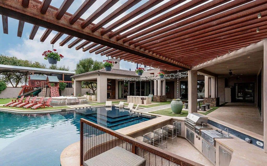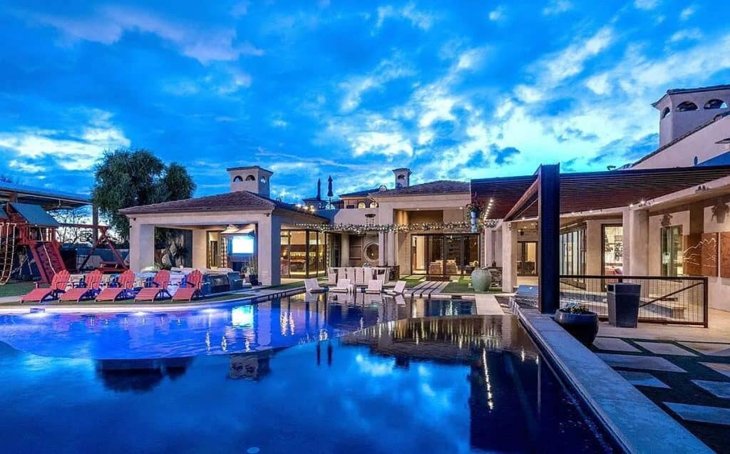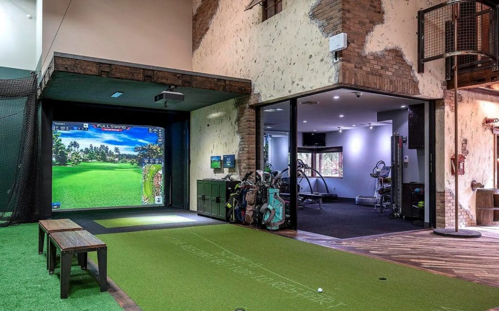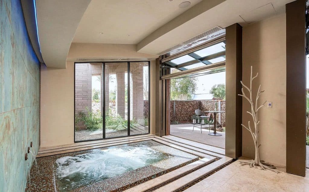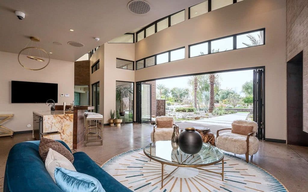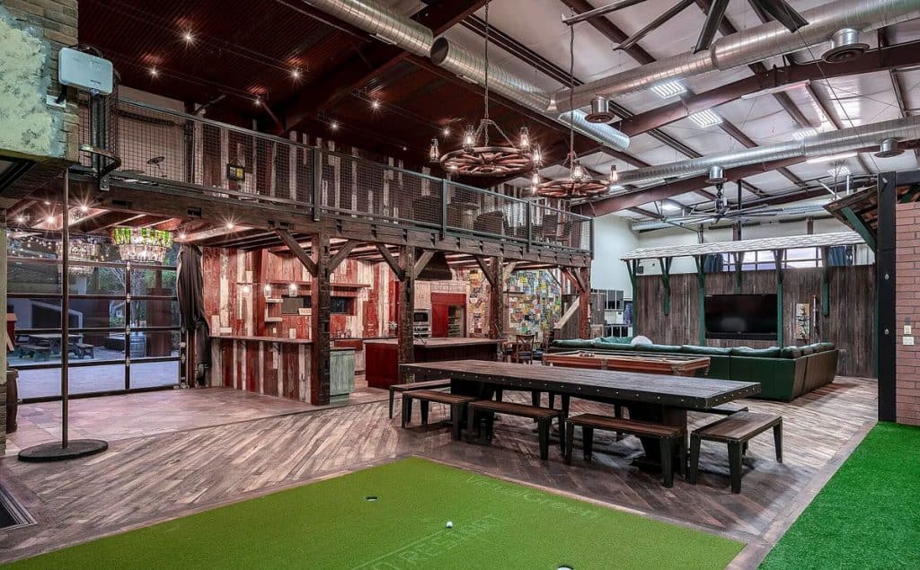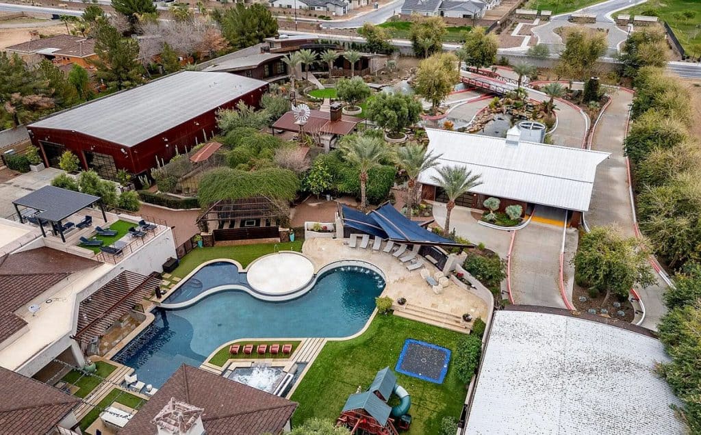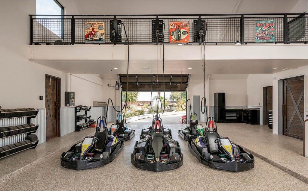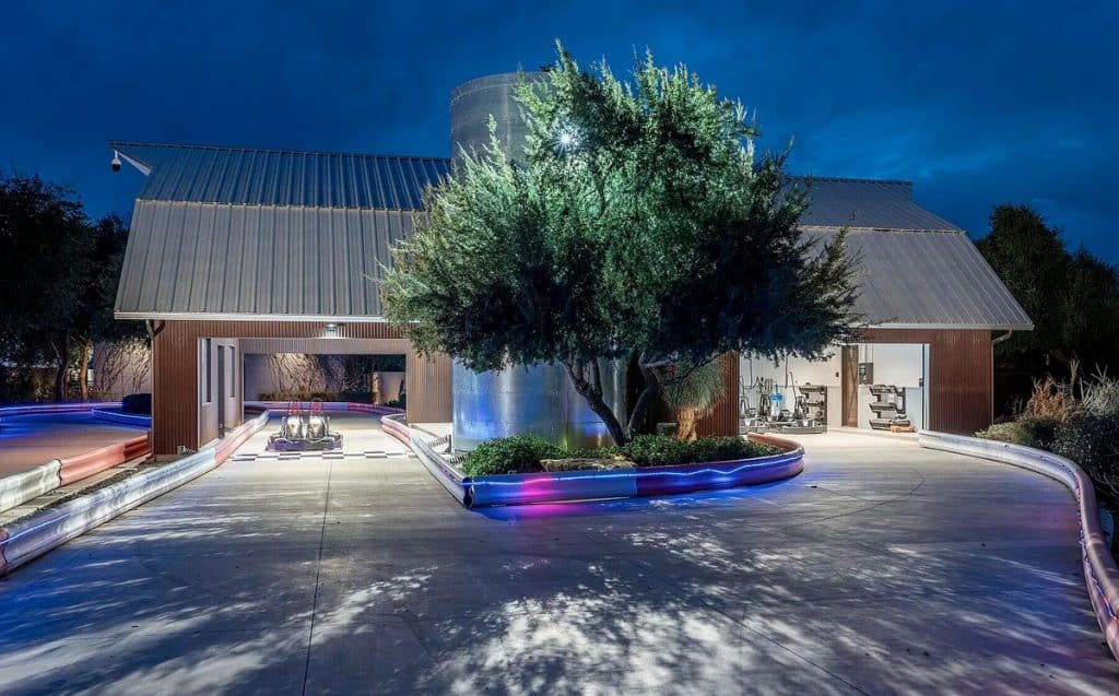 The main house has 9,326 square feet of sophisticated living area, complete with a 6-stall garage and a private movie theater. The private day spa contains 5,660 square feet that includes a massage room, his-and-hers bathrooms, a yoga room, a hidden guest suite, a dry sauna, a steam room, a spa shower, and a hot tub. The man cave has 6,610 square feet dedicated to entertainment and relaxation, featuring a commercial kitchen, golf simulator, dance studio, batting cage, a fully equipped fitness room, and a studio apartment. The go-kart track features 6 electric go-karts for limitless outdoor enjoyment.