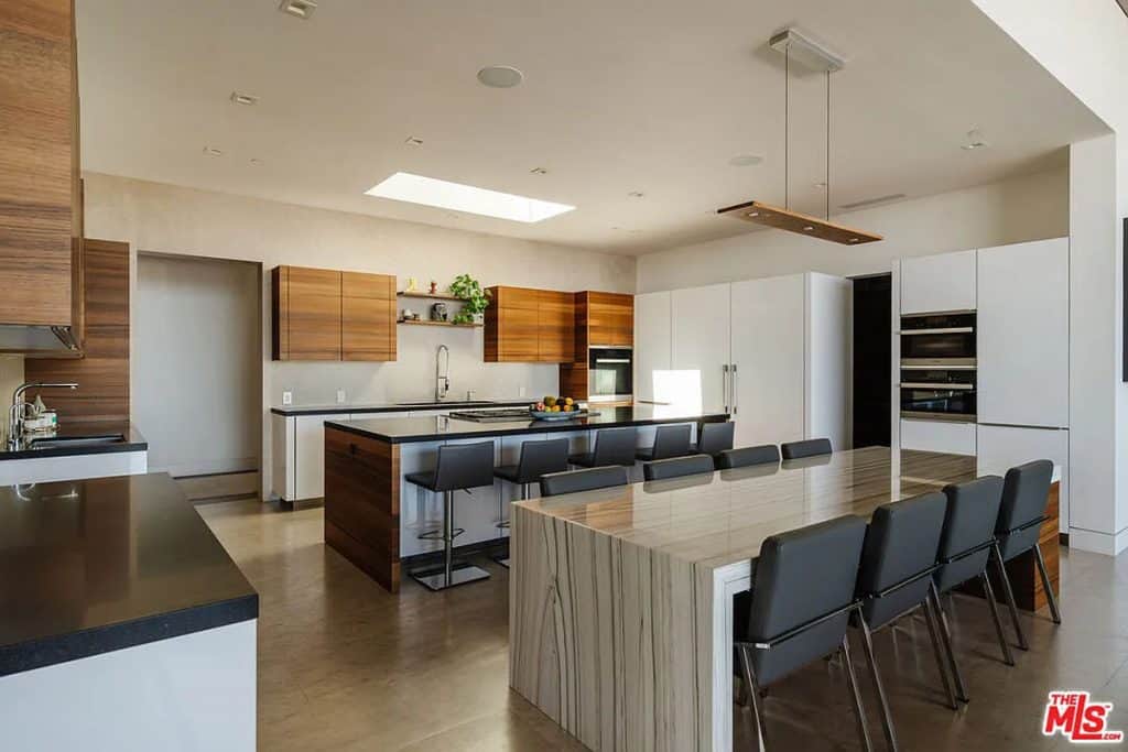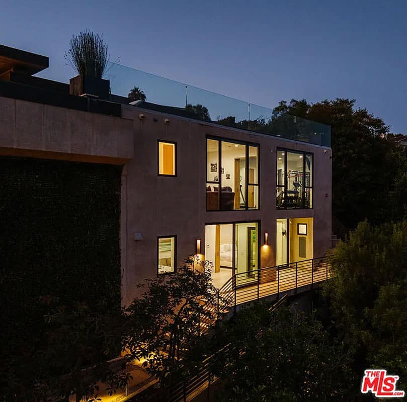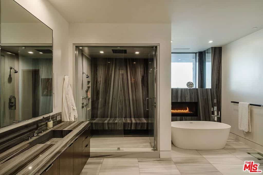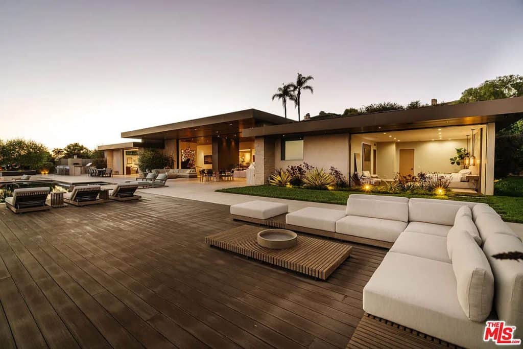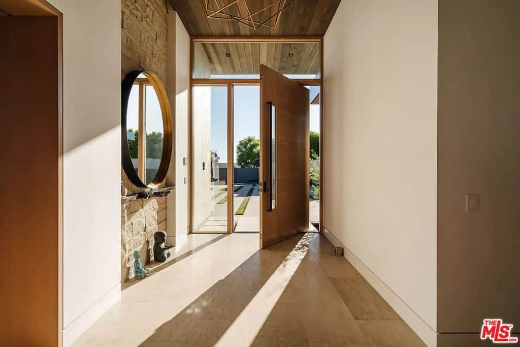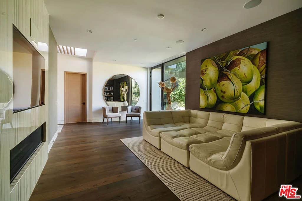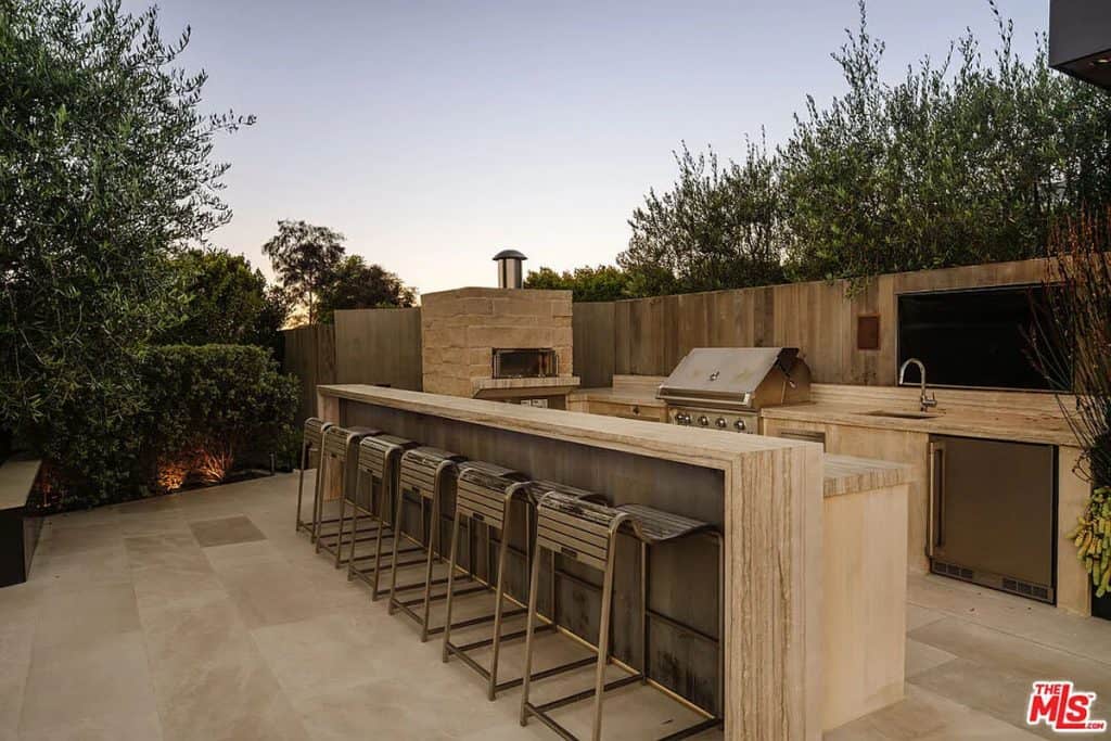 Covering 12,000 square feet on nearly an acre of land, it boasts spectacular views of the ocean, city, and canyons, complemented by a wealth of high-end amenities. The interior is bathed in natural light, blending elegance, sophistication, and practicality with soaring 14-foot ceilings, limestone flooring, and immaculate finishes. Approximately 80 feet of pocket doors slide open to unveil breathtaking ocean and city vistas, perfectly framing the impressive 50-foot infinity-edge pool. The outdoor space is designed for entertaining, complete with an outdoor kitchen, al fresco dining areas, a cozy fire pit lounge, a pizza oven, a pool, and a lush lawn that offers uninterrupted ocean views. The primary suite is a true retreat, featuring a spacious walk-in closet, two fireplaces, and a spa-like bathroom with an oversized shower, heated floors, and a tub that overlooks the ocean. Additional spaces include an office, a movie theater, a game room, and a bar. Other amenities include a pilates studio, a gym, and an indoor basketball court. The estate is equipped with a large three-car garage, plenty of extra parking in the motor court and private driveway.