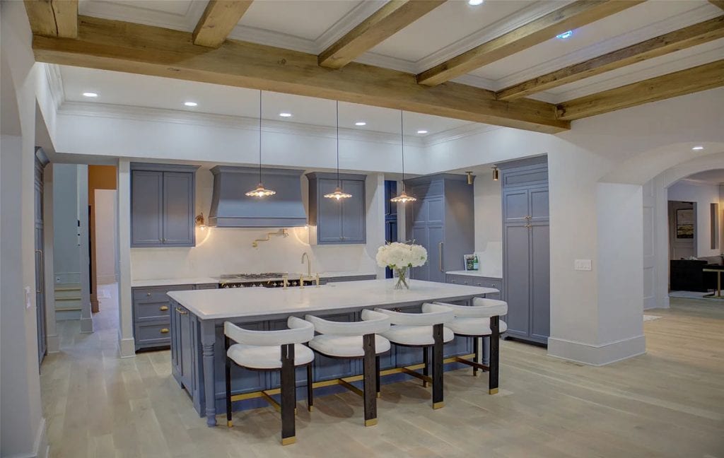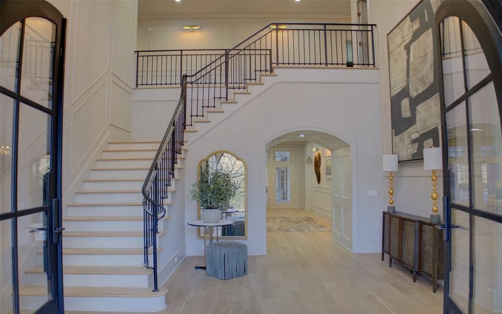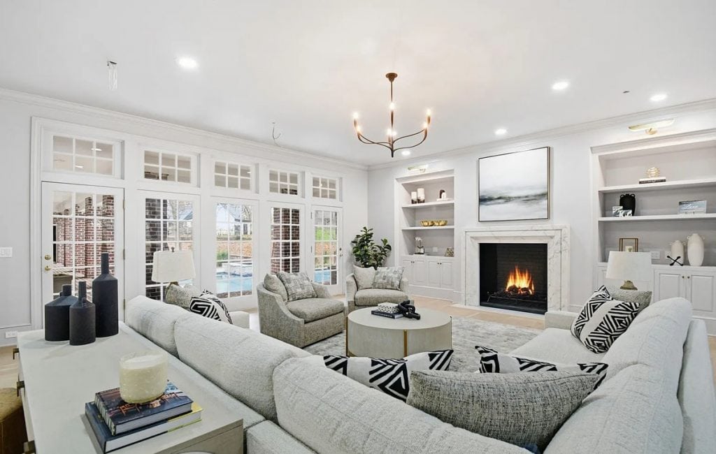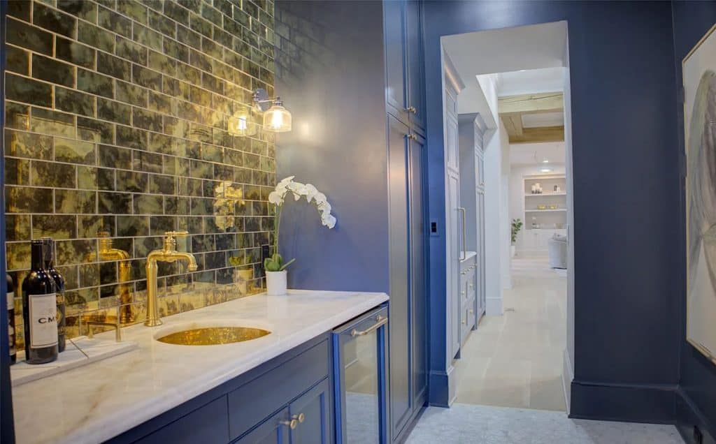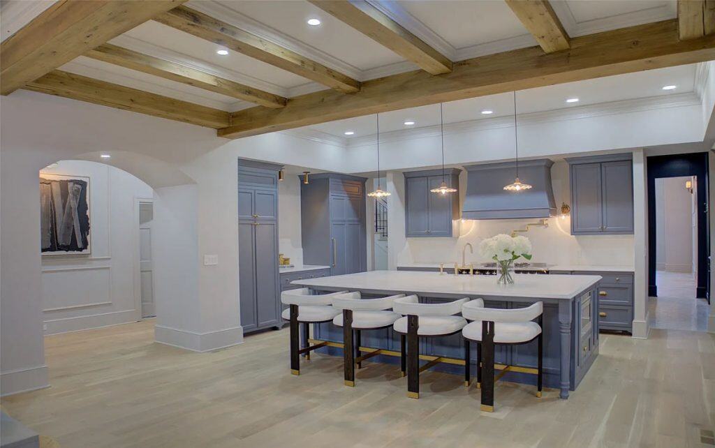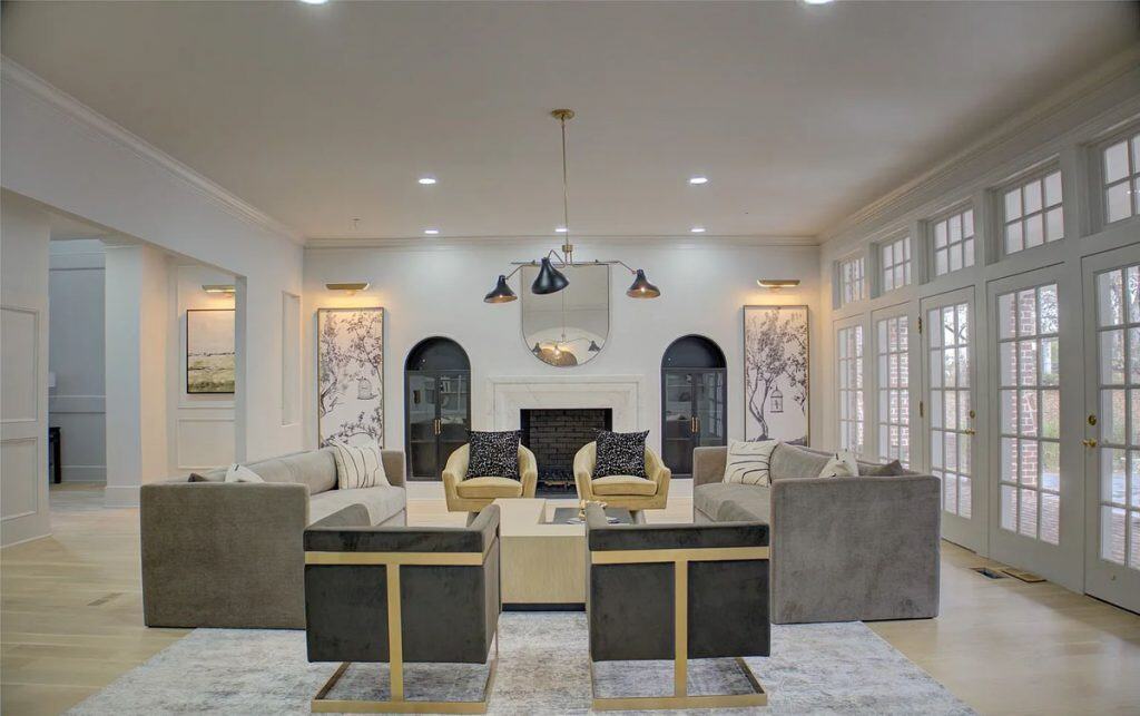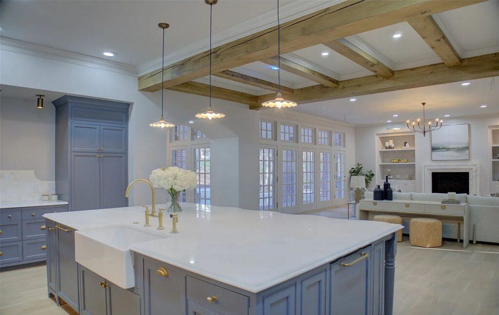 This home has been completely remodeled from top to bottom, featuring only the finest finishes. Spacious rooms and custom-designed light fixtures enhance the home throughout. A beautifully crafted iron stairway railing welcomes you in the front entry hall. The kitchen showcases Namibia Marble countertops and includes a custom Lacanche Range imported from France. Adjacent to the kitchen is a Scullery, perfect for preparation and entertaining, which adds two extra ovens, a bar, and an additional side-by-side refrigerator/freezer. All fireplaces are adorned with marble surrounds. The primary suite offers views of the pool and waterfalls, with separate closets featuring glass-front cabinets. Upstairs, you’ll find a bunk room, large bedroom suites with full baths, and a theater room. The newly designed outdoor kitchen and living area are absolutely stunning. Additionally, there is a playhouse in the backyard.