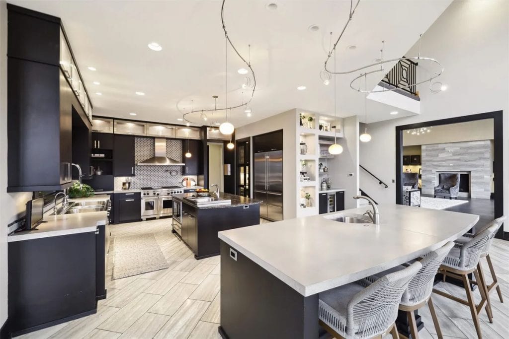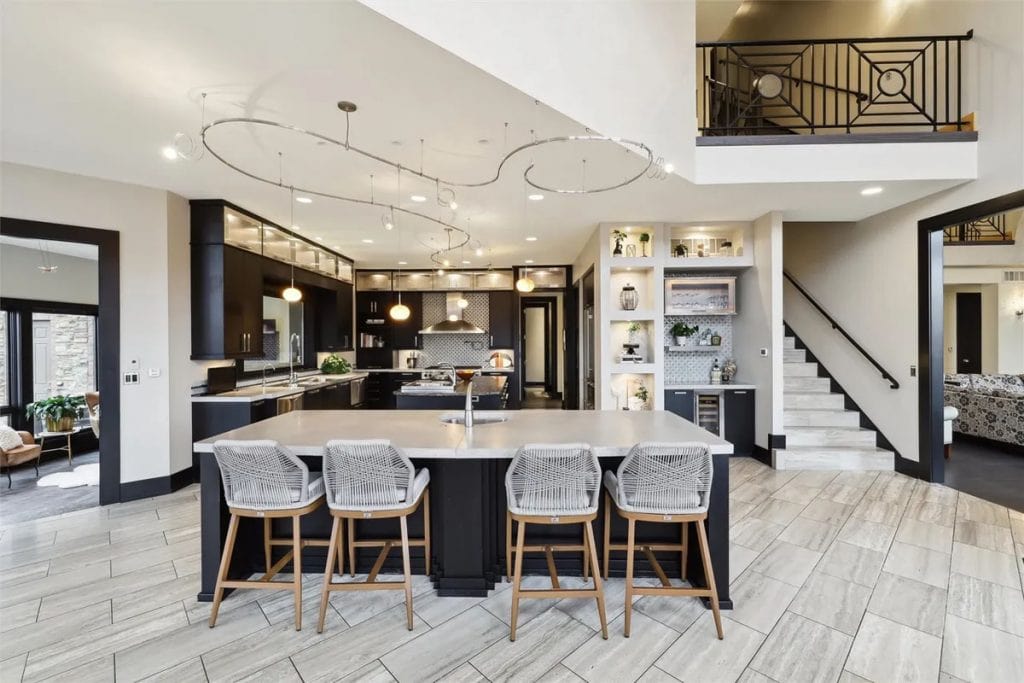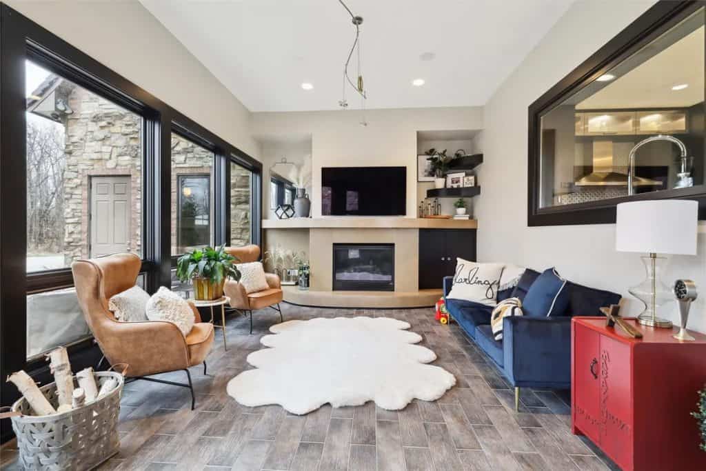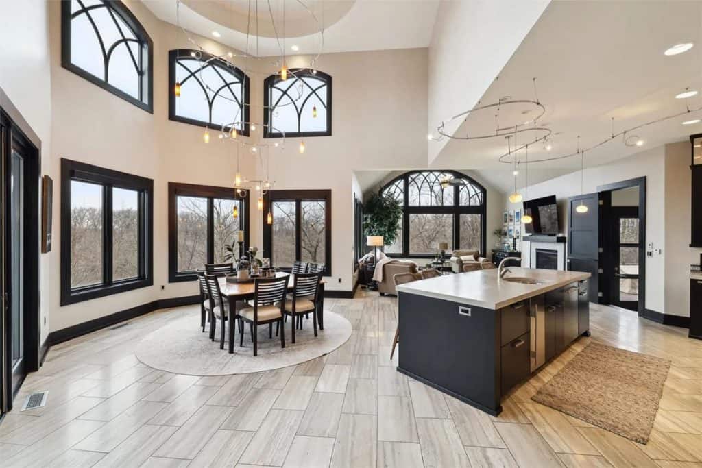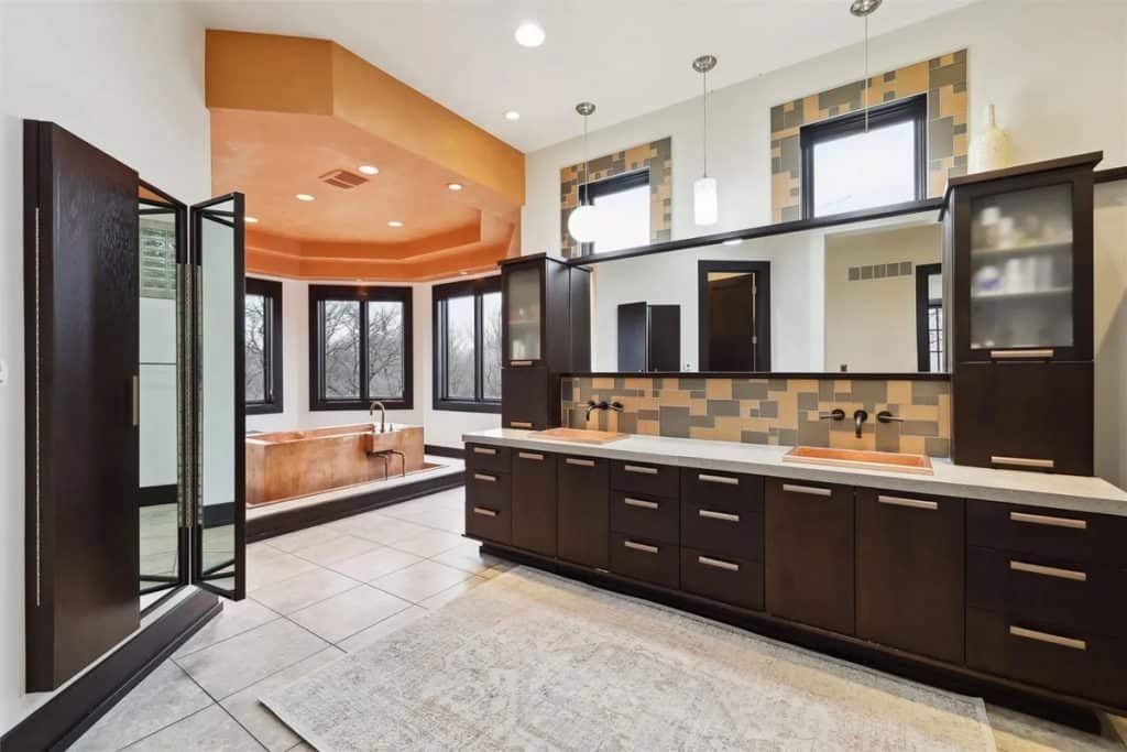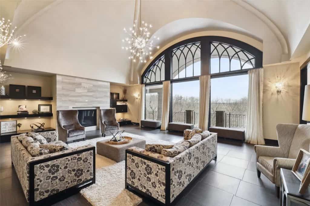 It features two swimming pools—one indoor complete with a waterfall, slide, plus outdoor pool equipped with a swim table, water feature jets, and metal palm trees adorned with lighted coconuts. Additionally, there are two hot tubs (one indoors and one outdoors), a 73’x 120’ (8,760 square feet) heated and air-conditioned indoor tennis facility that can also accommodate a car collection, and a 1,708 square feet heated attached garage for 4 cars. The theater room includes 5 theater chairs and 3 TVs; the kitchen is outfitted with 3 dishwashers, 3 sinks, a steaming station, a Sub-Zero refrigerator/freezer, refrigerator drawers, an ice-maker, a Wolf double oven, a warming drawer, and a walk-in pantry. The primary bathroom features a spacious steam shower with double heads, and there are 4 laundry rooms equipped with 4 washers and 4 dryers. The great room boasts a cathedral ceiling with a chandelier that can be lowered for cleaning at the touch of a button. There is also an apartment with two separate entrances, two secret bookshelf doors, and no carpet except in the theater room. Additional amenities include a generator, 3 safes, a safe room, an exercise room, an invisible fence, a dog shower, a water feature with a pond, a fish aquarium, 5 efficient geothermal furnaces, and in-floor radiant heat throughout the entire house and garage.