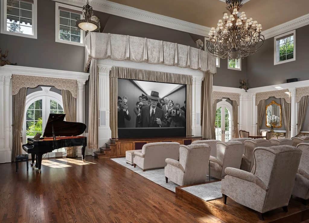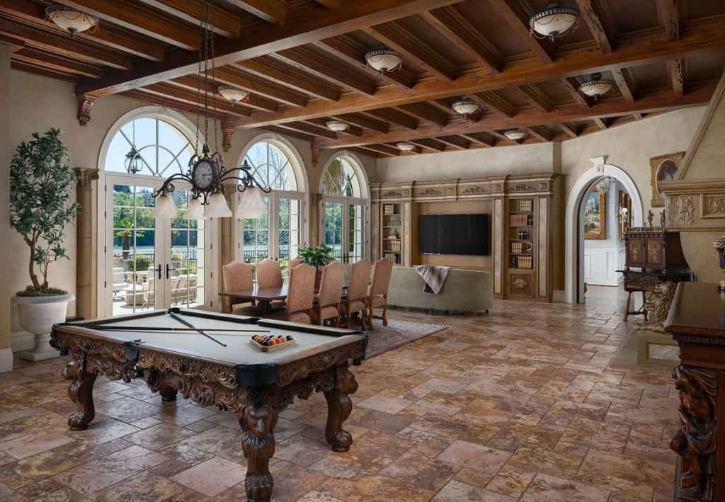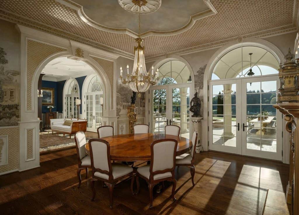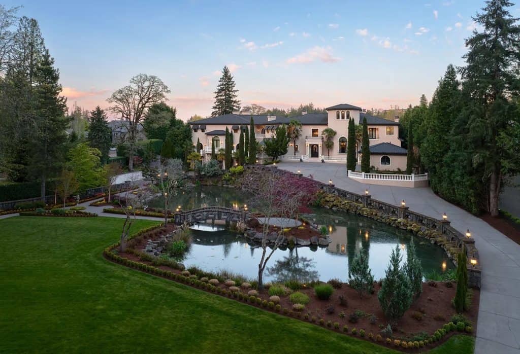 At the center of the home, a breathtaking theater room features high ceilings, a grand fireplace, Juliet balconies, and a built-in stage that can easily convert into a sophisticated ballroom. Passing through the double doors, you’ll discover a home gym and a large billiards room, complete with a full bar and kitchen—ideal for hosting gatherings. For any book lover, this home is a dream come true, showcasing a sophisticated library and several beautifully crafted home offices scattered throughout. Step outside and embrace the luxury of resort-style living on your grand patio, which accommodates seating for 20, boasts a charming courtyard fountain, a fully equipped pool house, a spacious pool, an in-ground spa, and several entertaining areas—all offering peaceful views of the Willamette River. Take a leisurely walk down to your private dock and dive into all the river has to offer.