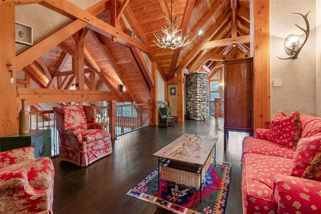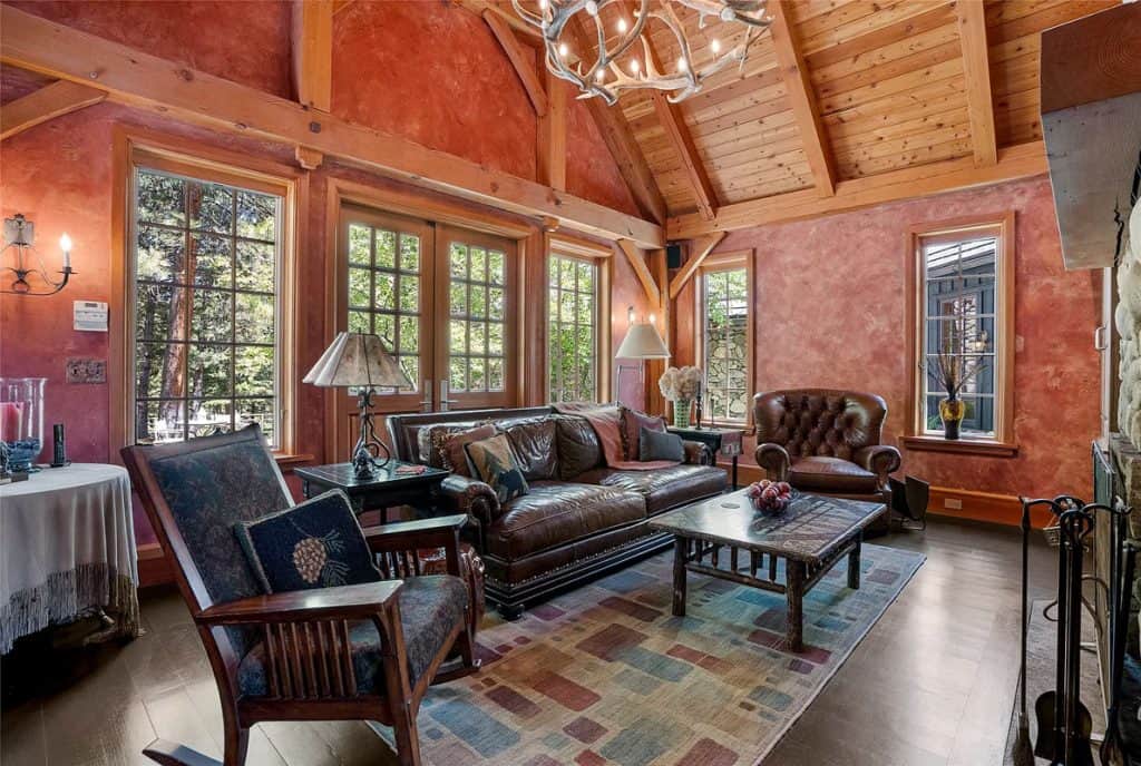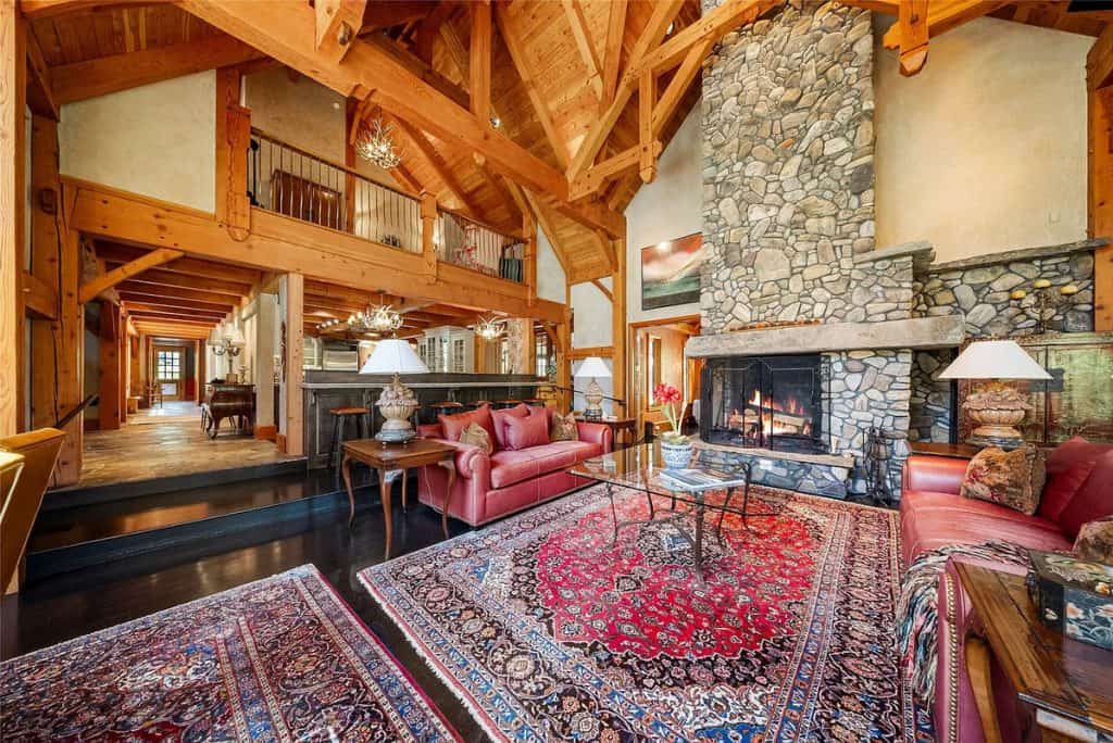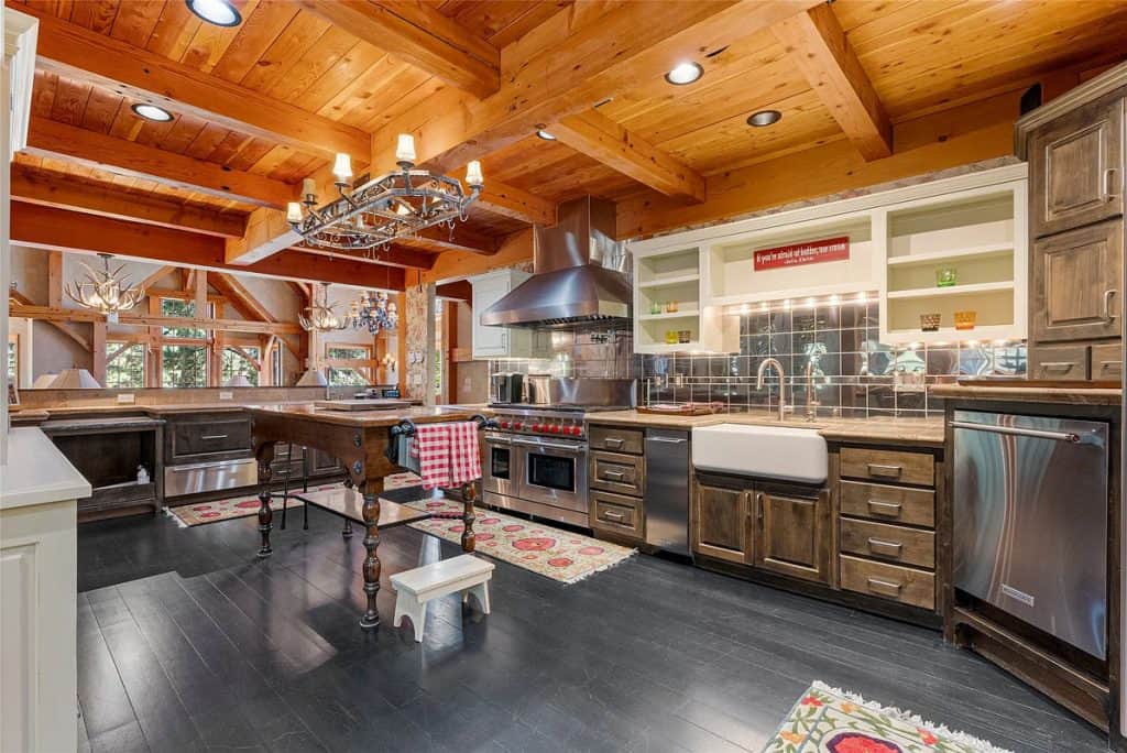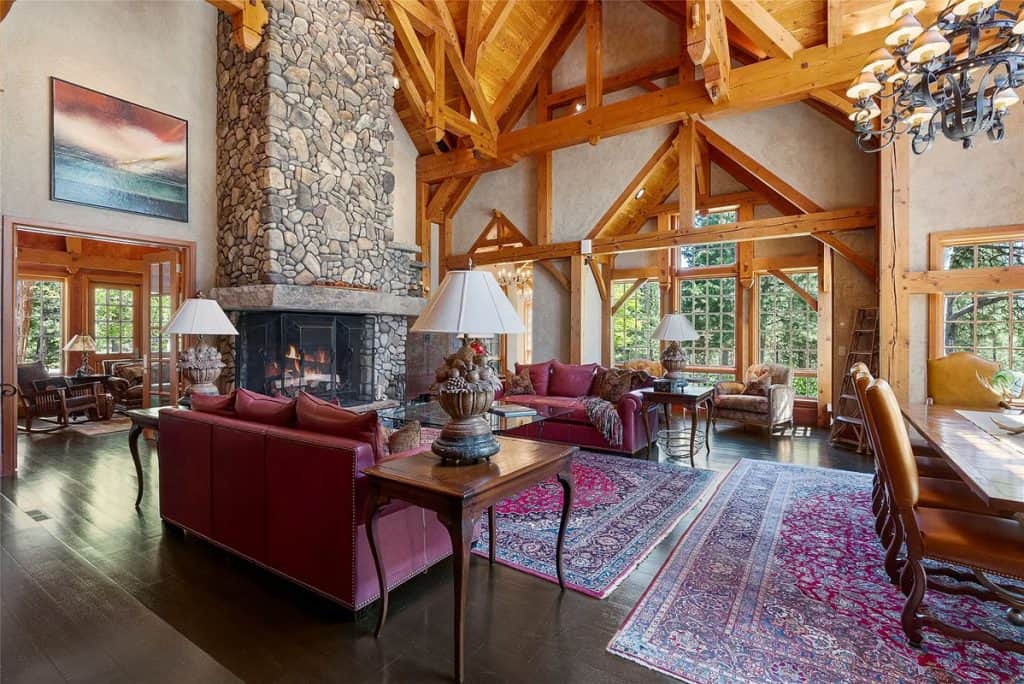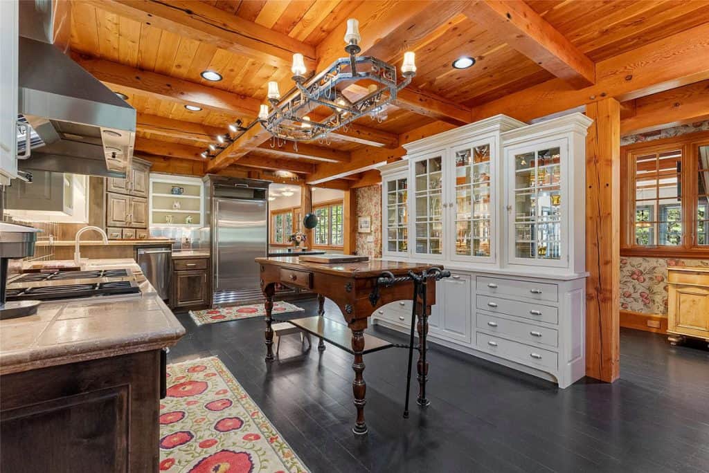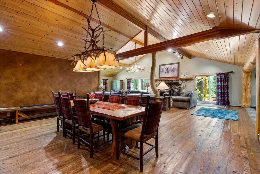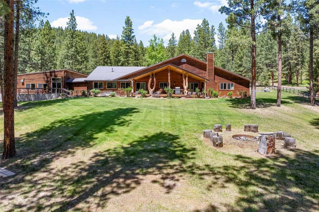 Nestled on 83 pristine acres adjacent to the Bitterroot National Forest, this remarkable estate in Montana serves as a private retreat where skilled craftsmanship harmonizes with classic mountain living. Accessed through a gated entrance and bordered on two sides by public lands, the home and its accompanying buildings are strategically placed to ensure total privacy while embracing the untamed beauty of Montana. Outside, the property boasts a greenhouse, a garden shed, a spacious workshop, a two-story horse barn complete with an upstairs apartment, a separate workshop, and a metal utility barn—each building exemplifying both utility and design. Nestled nearby, the 5,000-square-foot guest lodge provides complete privacy from the main residence. It has been fully remodeled and includes 3 bedrooms, a bunk room, a full kitchen, a game room, two living areas, an outdoor covered entertainment deck, and a 40-foot indoor saltwater pool complex.