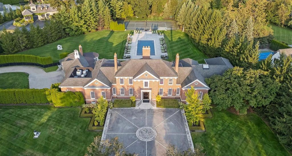 As you step inside, the impressive marble foyer and staircase, along with soaring ceilings and exquisite architectural details, establish the ambiance for this home’s unique heritage. Access to terraces and outdoor entertaining areas connects with gathering spaces to promote a seamless flow, ideal for hosting large groups or savoring peaceful moments. The primary suite on the first floor serves as a secluded haven featuring a morning bar, two spacious walk-in closets, a spa-like bathroom, and a separate sitting area. The lower level evolves into a private club, boasting exceptional recreational amenities such as a ventilated cigar room, an expansive wine cellar, a stadium-style theater, a complete fitness center, a barber room, and a fully equipped second kitchen with a custom dish pantry. Outside, a shimmering pool accompanied by bath cabanas and a complete outdoor kitchen beckons for summer gatherings, while a top-notch tennis court provides limitless fun.