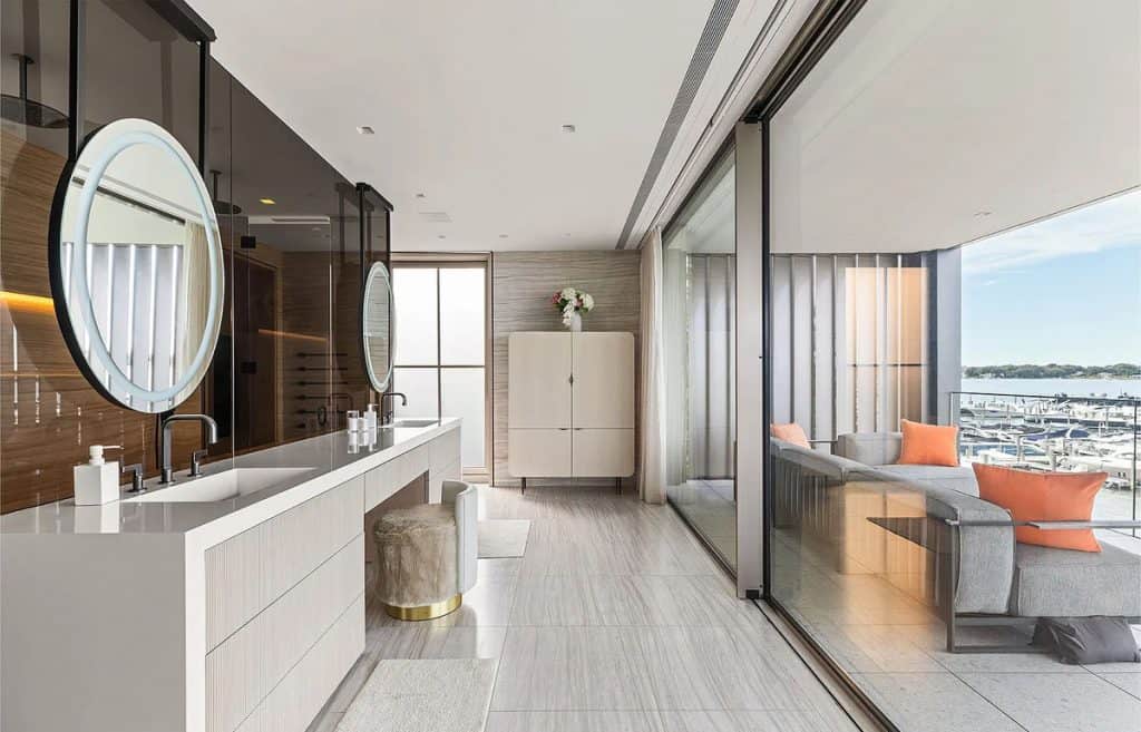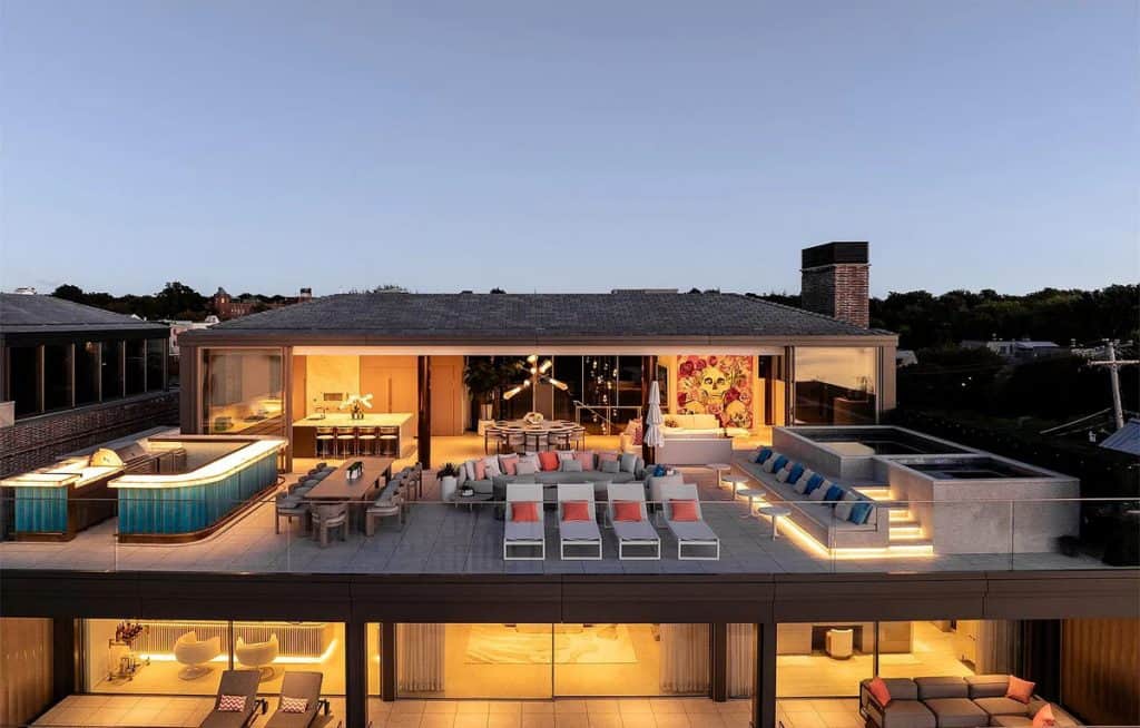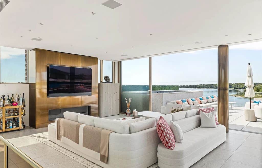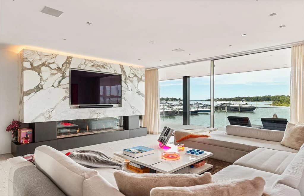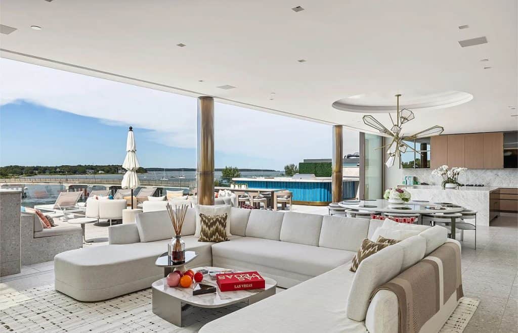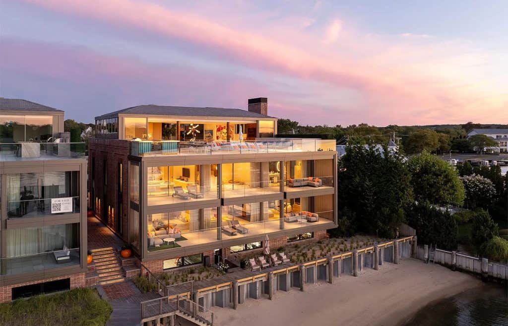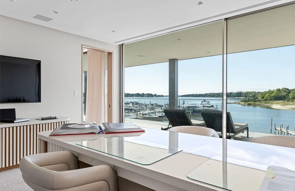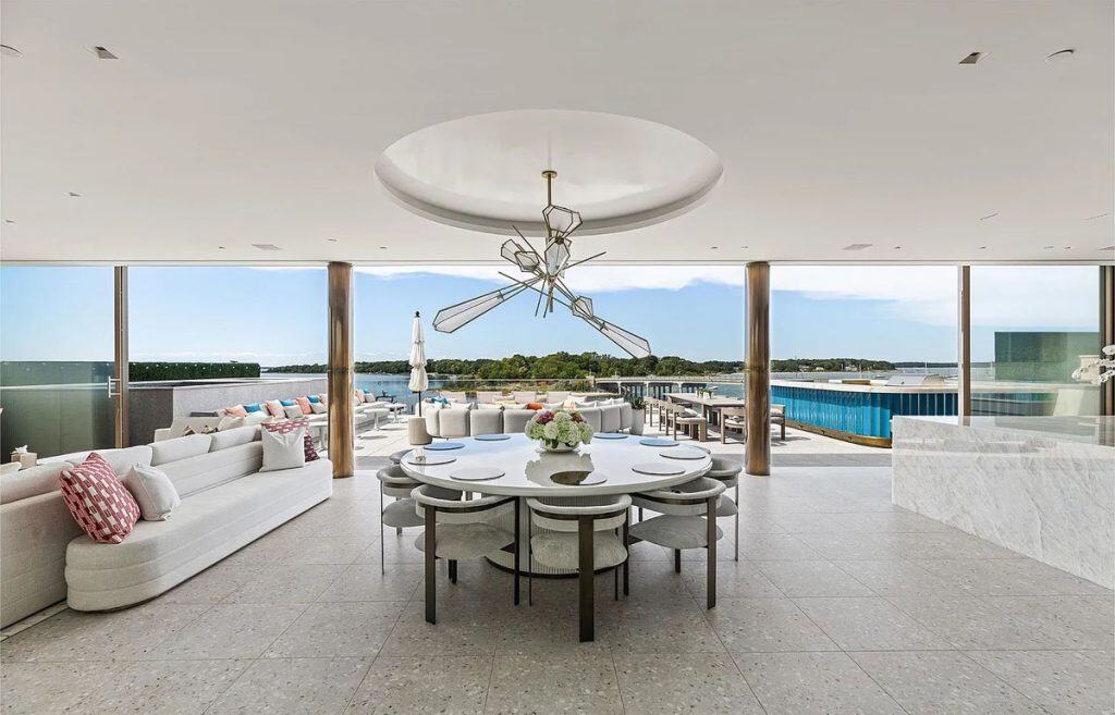 With an impressive 250’+/- of prime waterfront, this estate transcends the concept of a home; it is a four-story masterpiece of light, glass, and stone, designed for the discerning global citizen who values complete privacy along with exceptional nautical access. An outdoor al fresco setting with tiered terraces and lounge decks creates a multi-sensory connection to the water. This rooftop sanctuary is a crowning achievement, boasting a private pool and spa that are suspended above the harbor, providing a 360-degree view of Sag Harbor’s stunning gold-coast sunsets. Exclusive marina access: The estate features a private, deep-water marina with two 60′ boat slips. Situated at the heart of the Hamptons’ maritime scene, it allows for immediate access to the open Atlantic or the tranquil coves of Shelter Island Sound.