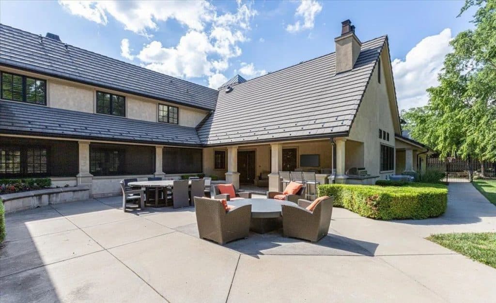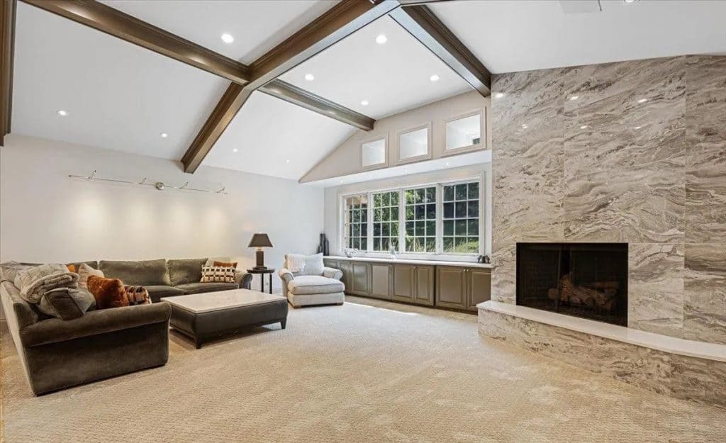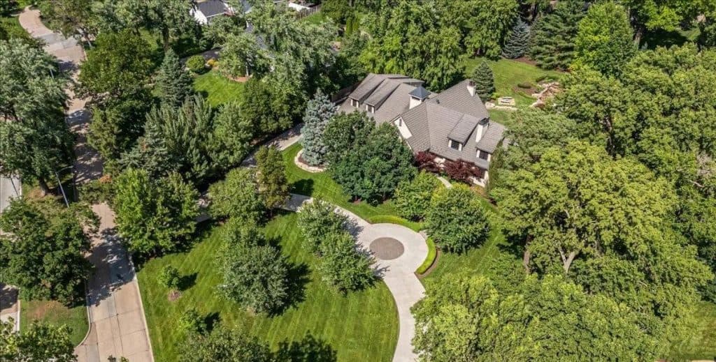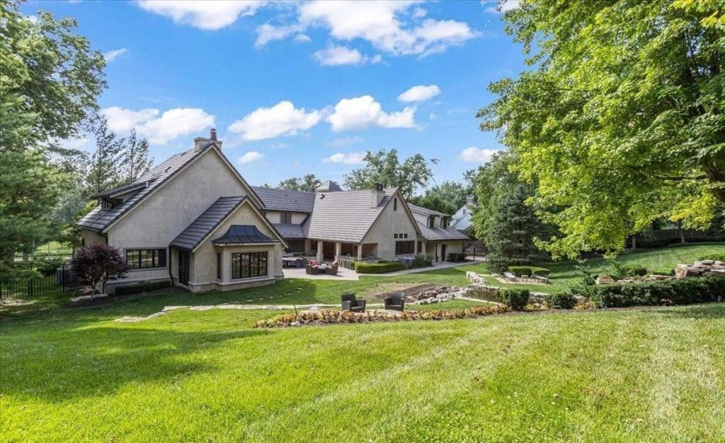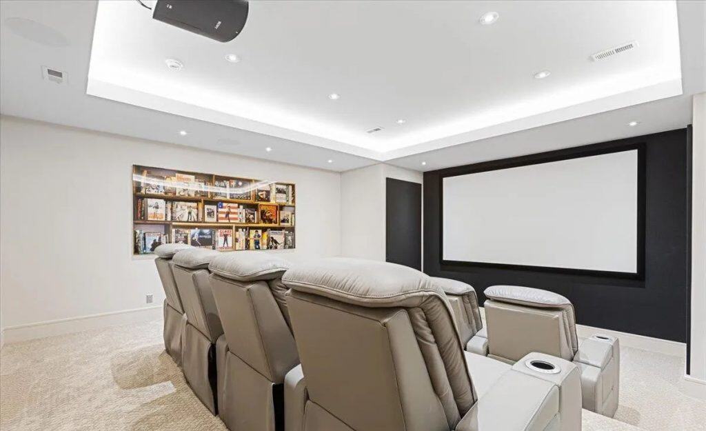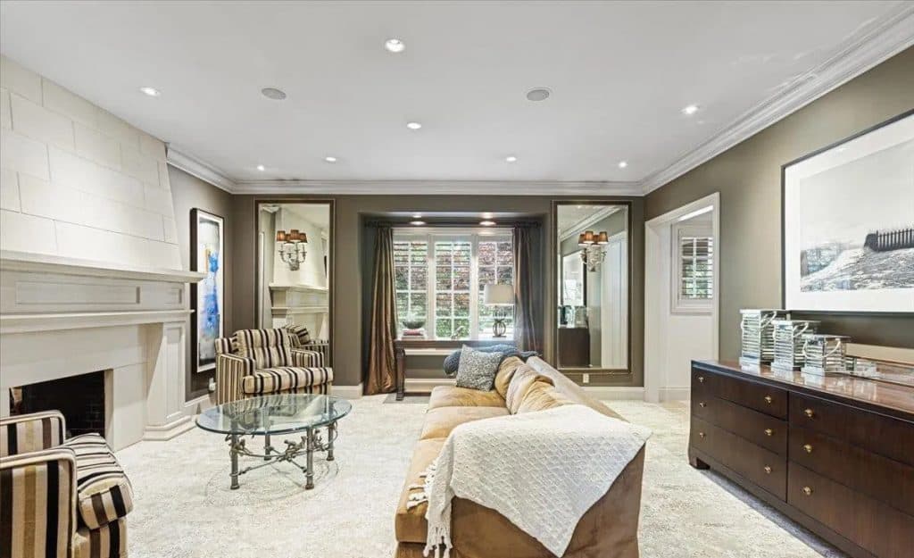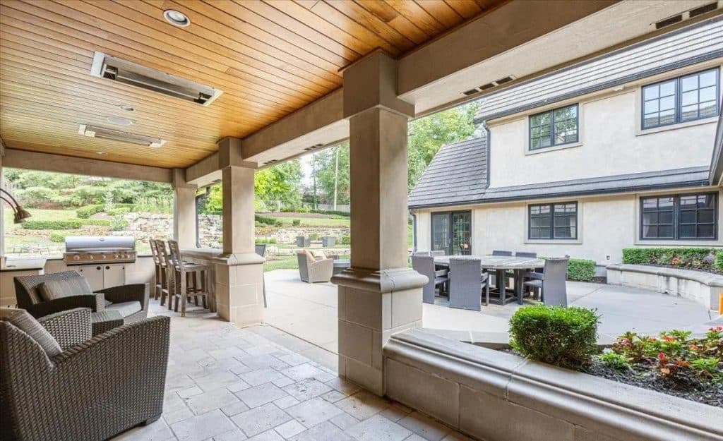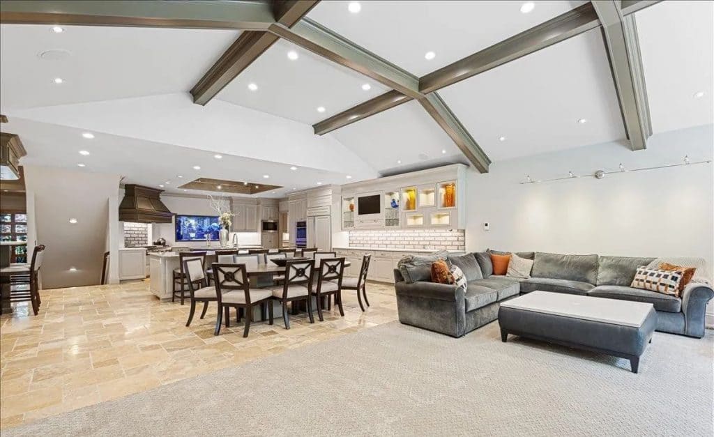The gourmet kitchen boasts a 6-burner gas range, double oven, and a double-sided aquarium that connects to the dining room. It also includes a prep area, a bar equipped with a wine fridge and ice maker, and a spacious family room featuring a fireplace. On the main level, there is a formal living room with a double-sided fireplace that links to a two-story office and an upper library. Enjoy a covered patio complete with a built-in grill and heaters, a screened-in porch, and a tranquil waterfall feature. The basement features a wine room, a sunken bar, a theater, an arcade, a gym equipped with a steam shower and sauna, along with ample storage space.