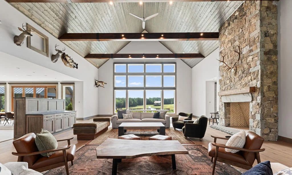 This family compound boasts three architecturally unique homes, each carefully situated close to one of two stocked private lakes: a 9,700± square foot craftsman-modern estate is adjacent to a guest house, hunting lodge, resort-style pool, spa, and outdoor kitchen. Additionally, there is a separate wellness center featuring an NFL-grade gym, yoga studio, sauna, and sparring mat. The historic Bourbon & Tobacco Barns bring charm, while a tranquil art studio provides a perfect retreat space. Designed by an experienced security strategist for sustainable off-the-grid living, this estate spans generations and features barns, extensive ATV trails, deer blinds, and shooting ranges that cater to the modern Garden & Gun lifestyle.