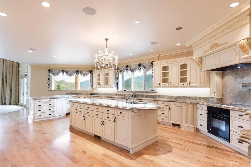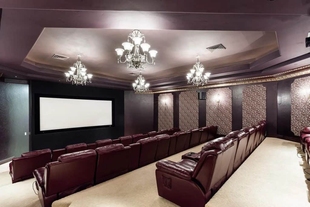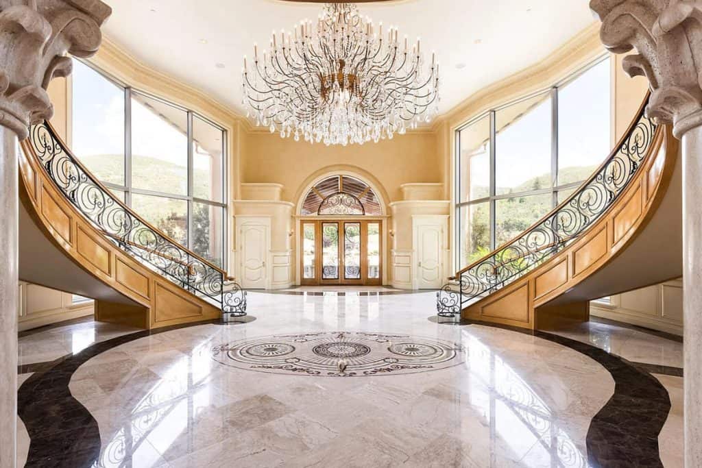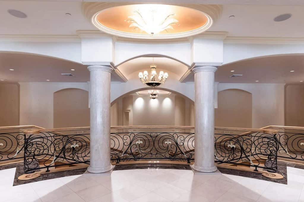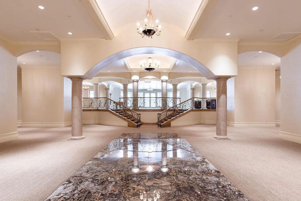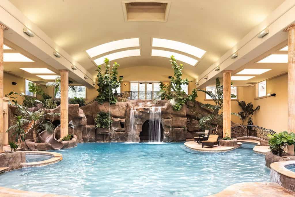 The impressive size of the home and the exceptional quality of its finishes are as captivating as the scenery. As you step through the front door, you’re greeted by a grand entryway featuring soaring ceilings over 20 feet high, a stunning chandelier, and graceful dual staircases. This property features an incredible resort-style swimming pool complete with a waterslide, waterfall, lazy river, rope swing, hot tub, a dedicated children’s area, and a kitchen. You’ll also find a basketball court, a two-lane bowling alley, a theater room with 27 seats, a sauna, a fitness room, a game room, and a children’s playroom designed like a pirate ship with a slide. Spanning 156 acres, this property is perfect for a primary residence, a vacation getaway, or a corporate retreat, and it’s also well-suited for horse enthusiasts.