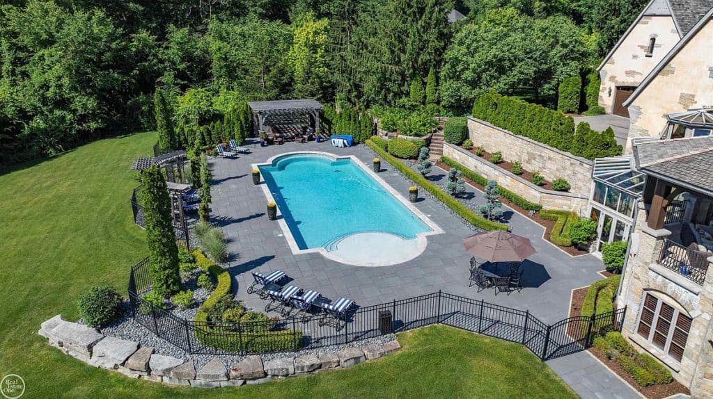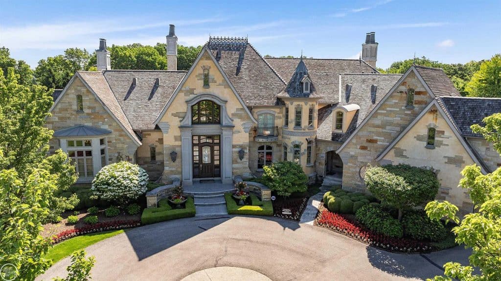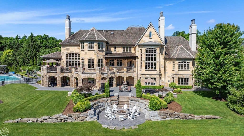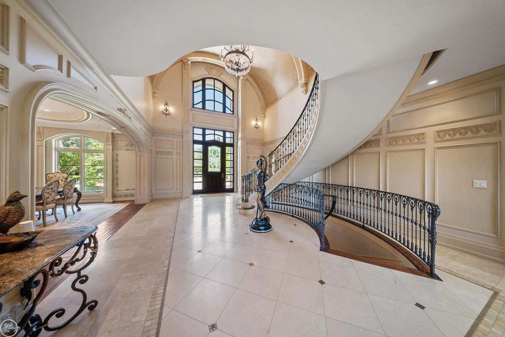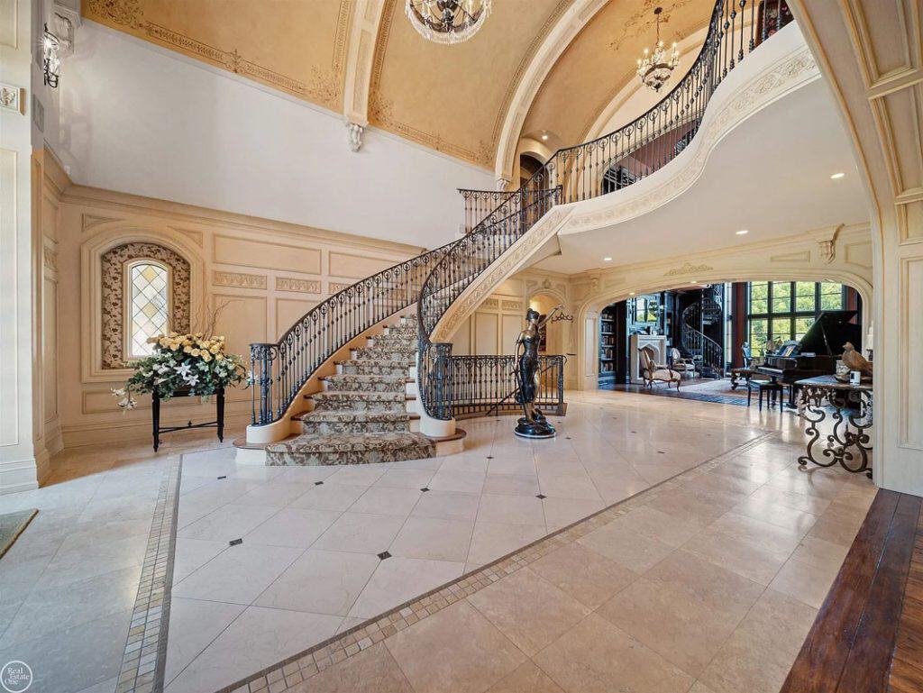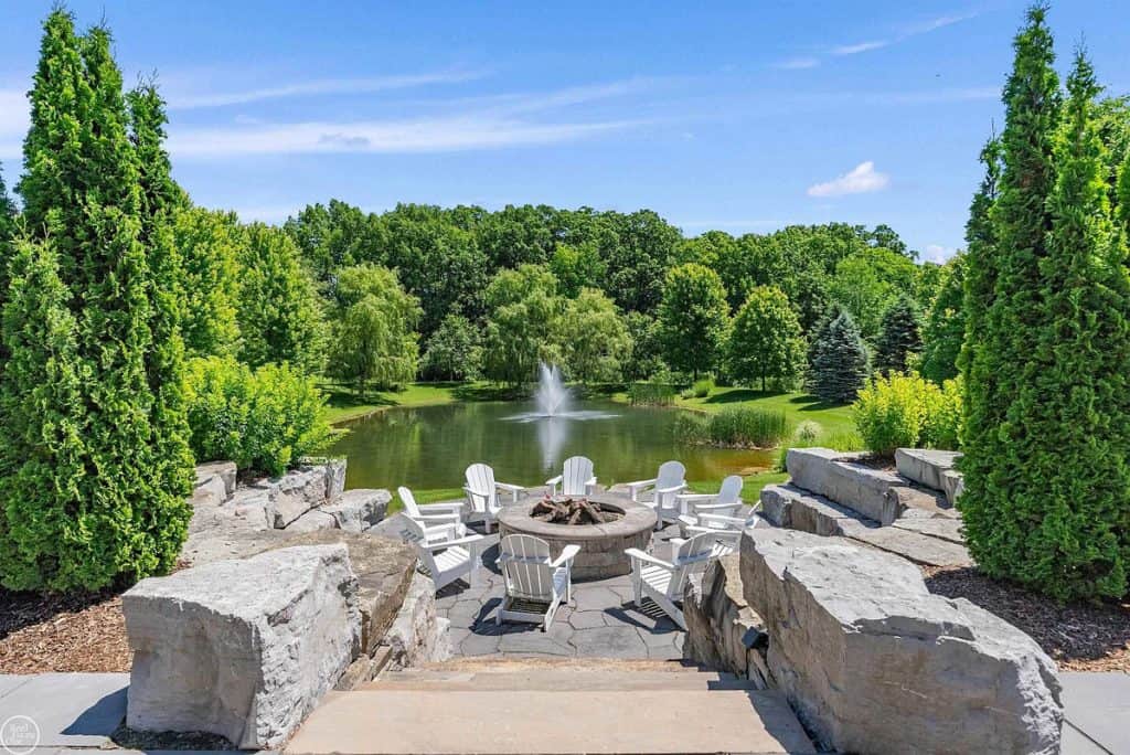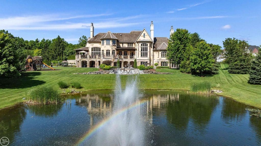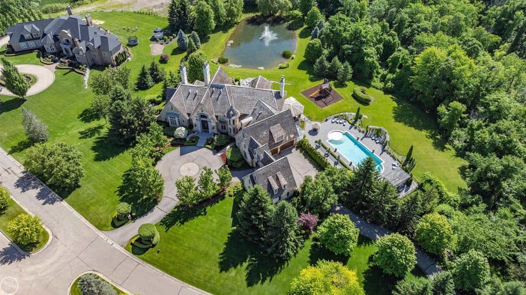 Tailored for entertaining, this custom-built home is nestled on a generous 4.25-acre private lot that backs onto a serene pond within the prestigious gated community of Orchard Ridge. Constructed with the highest quality materials and craftsmanship, it boasts over 14,000 sq. ft. of elegantly designed living space. The grand two-story foyer welcomes you with a sweeping wrought iron staircase that leads to a dual-level library. The chef’s gourmet kitchen is a delight for entertainers, featuring dual islands and top-of-the-line commercial appliances. The primary suite, located on the first floor in its own private wing, serves as a luxurious retreat with a spa-like bath that includes heated floors, separate dressing areas for him and her, a fifth fireplace, and large windows that offer views of the secluded grounds. The finished walkout lower level is an entertainer’s paradise, complete with a custom bar, billiards area, golf simulator, indoor hot tub room, sauna, greenhouse atrium, and a full bath with a changing room that opens to a 60′ x 25′ built-in swimming pool. Additionally, there’s a full upstairs apartment perfect for in-laws or an Au Pair, an elevator servicing all three floors, and covered patios on both levels that overlook the beautiful grounds and tranquil reflection pond. The heated garage accommodates six cars, and the extensive landscaping adds to the estate’s charm.