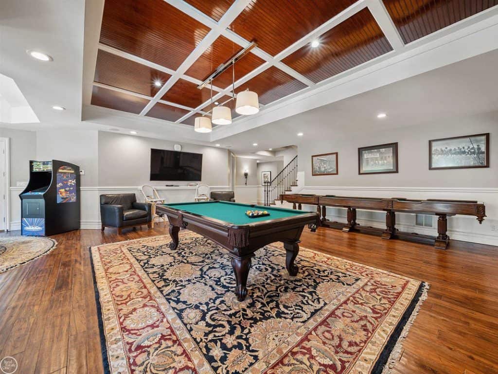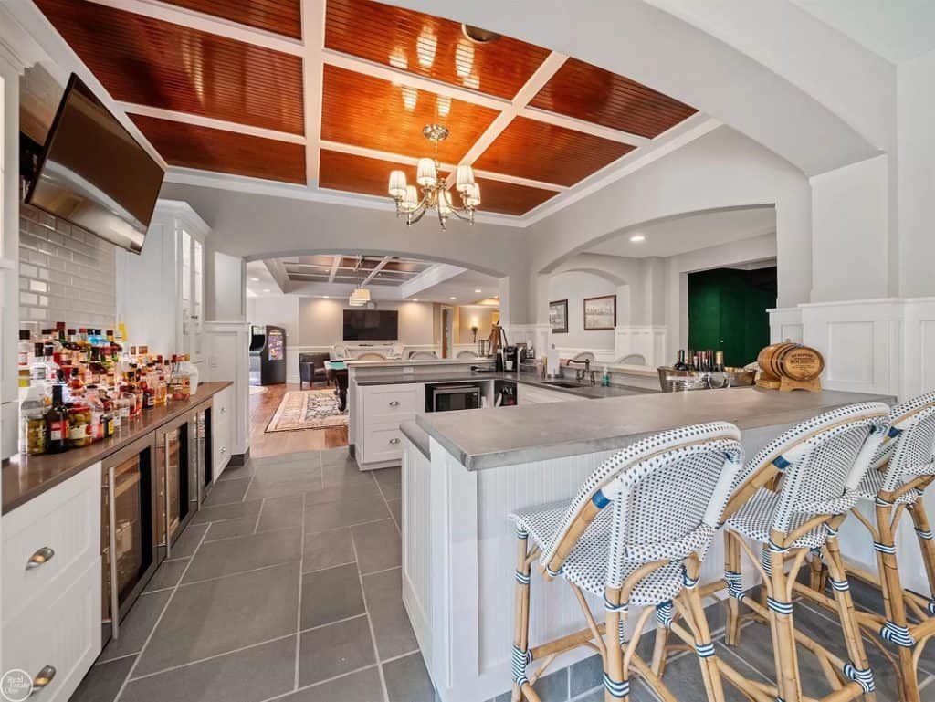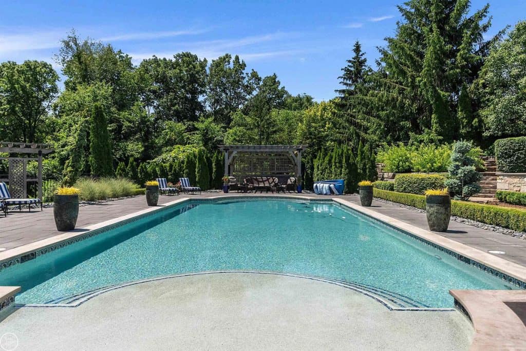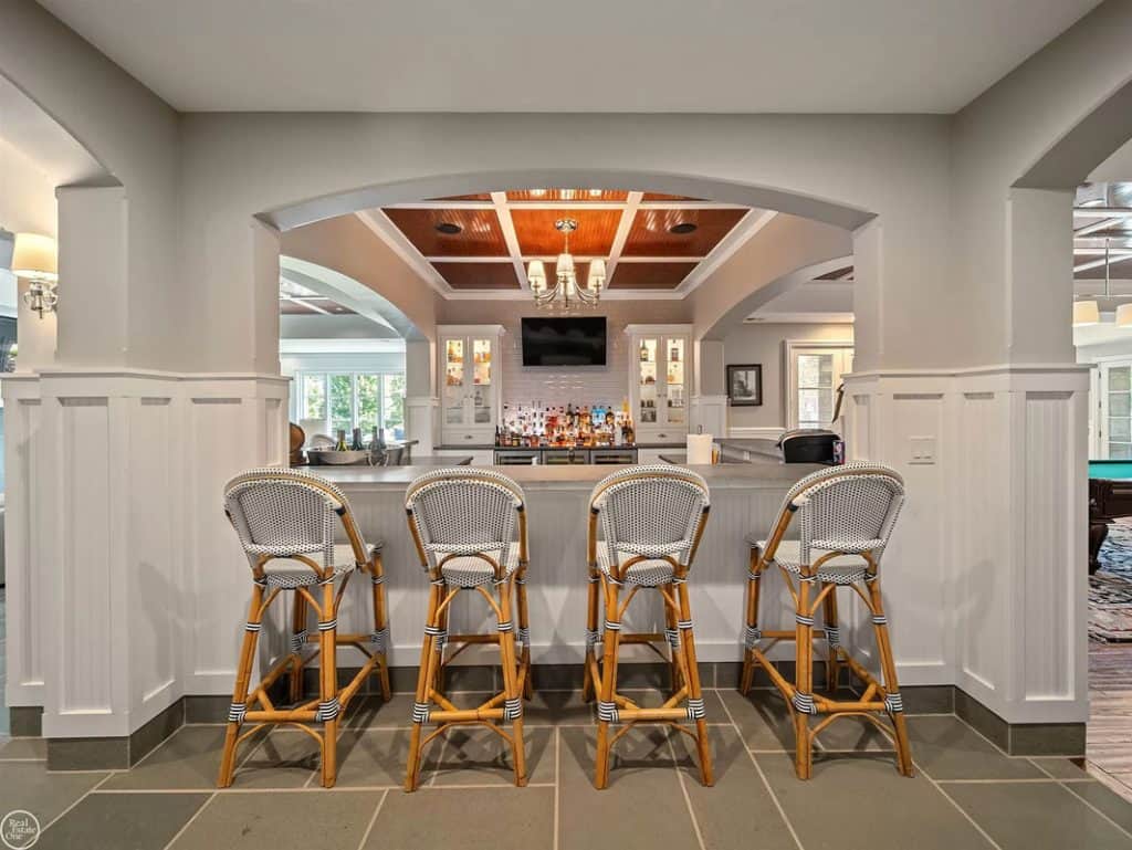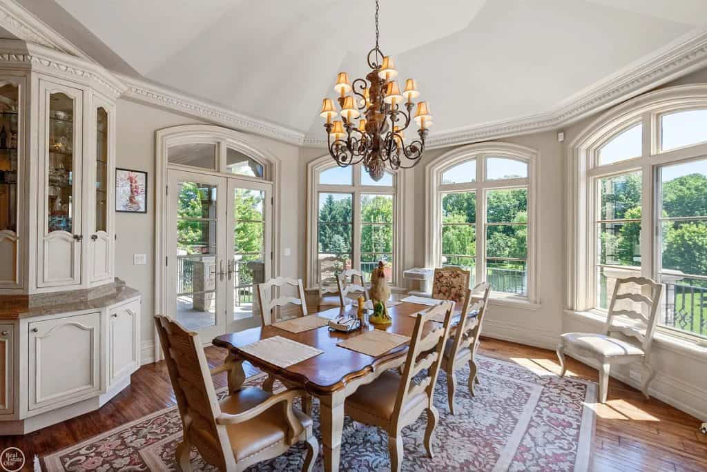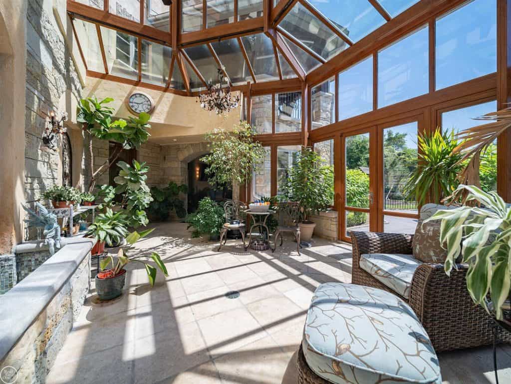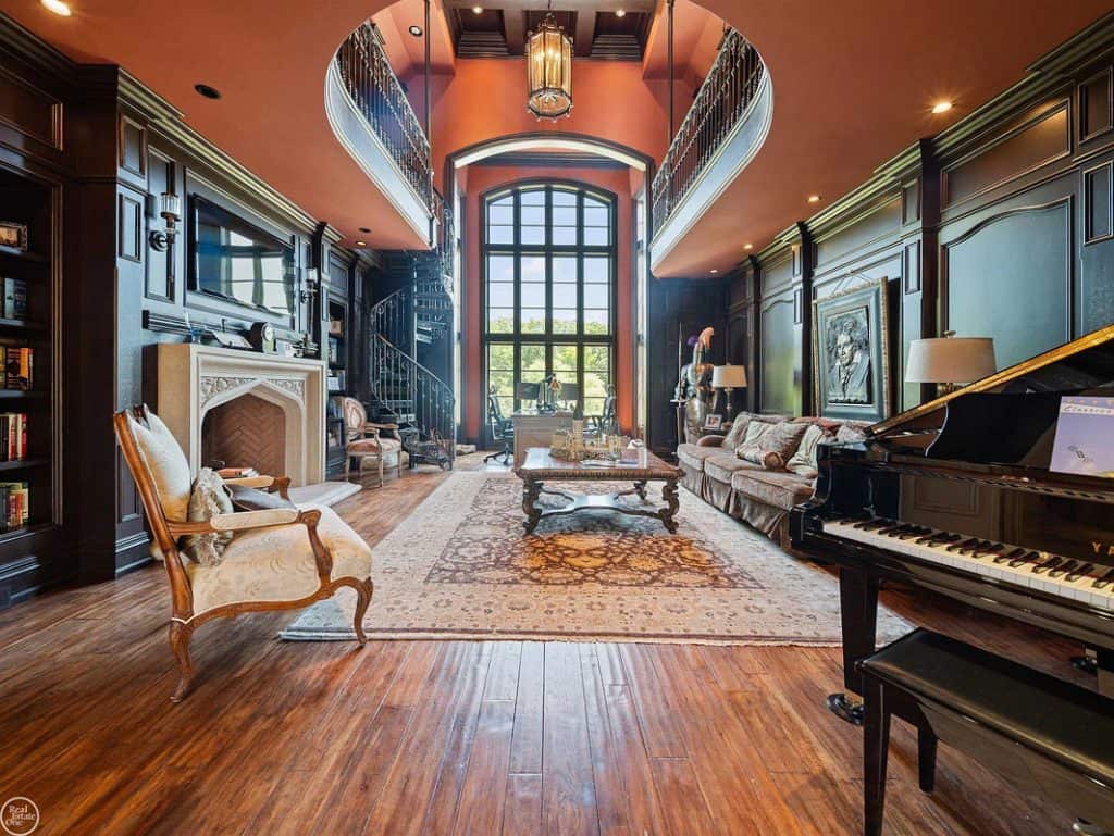 Tailored for entertaining, this custom-built home is nestled on a generous 4.25-acre private lot that backs onto a serene pond within the prestigious gated community of Orchard Ridge. Constructed with the highest quality materials and craftsmanship, it boasts over 14,000 sq. ft. of elegantly designed living space. The grand two-story foyer welcomes you with a sweeping wrought iron staircase that leads to a dual-level library. The chef’s gourmet kitchen is a delight for entertainers, featuring dual islands and top-of-the-line commercial appliances. The primary suite, located on the first floor in its own private wing, serves as a luxurious retreat with a spa-like bath that includes heated floors, separate dressing areas for him and her, a fifth fireplace, and large windows that offer views of the secluded grounds. The finished walkout lower level is an entertainer’s paradise, complete with a custom bar, billiards area, golf simulator, indoor hot tub room, sauna, greenhouse atrium, and a full bath with a changing room that opens to a 60′ x 25′ built-in swimming pool. Additionally, there’s a full upstairs apartment perfect for in-laws or an Au Pair, an elevator servicing all three floors, and covered patios on both levels that overlook the beautiful grounds and tranquil reflection pond. The heated garage accommodates six cars, and the extensive landscaping adds to the estate’s charm.