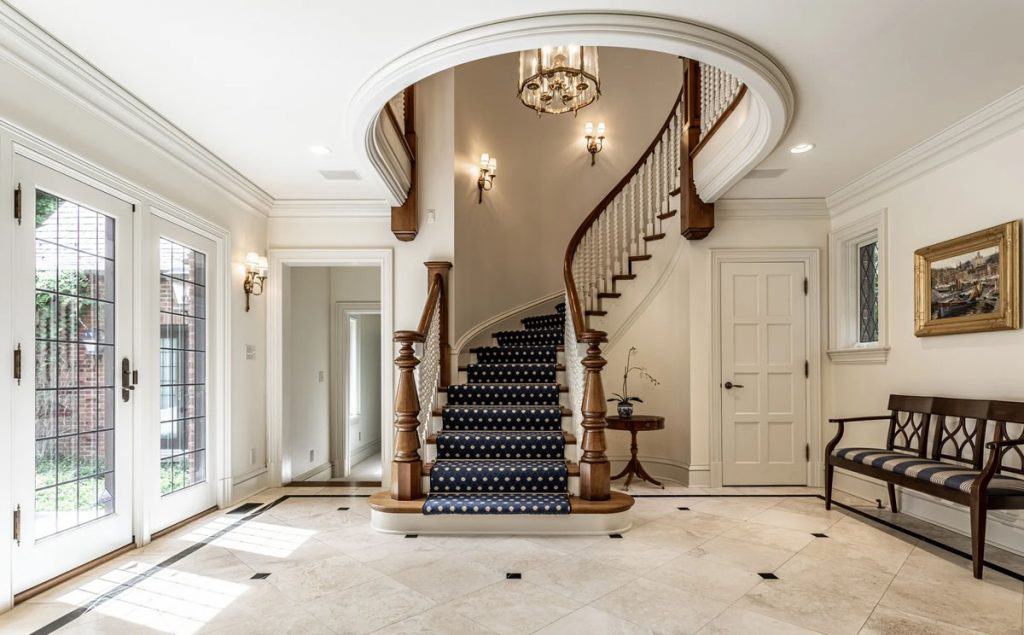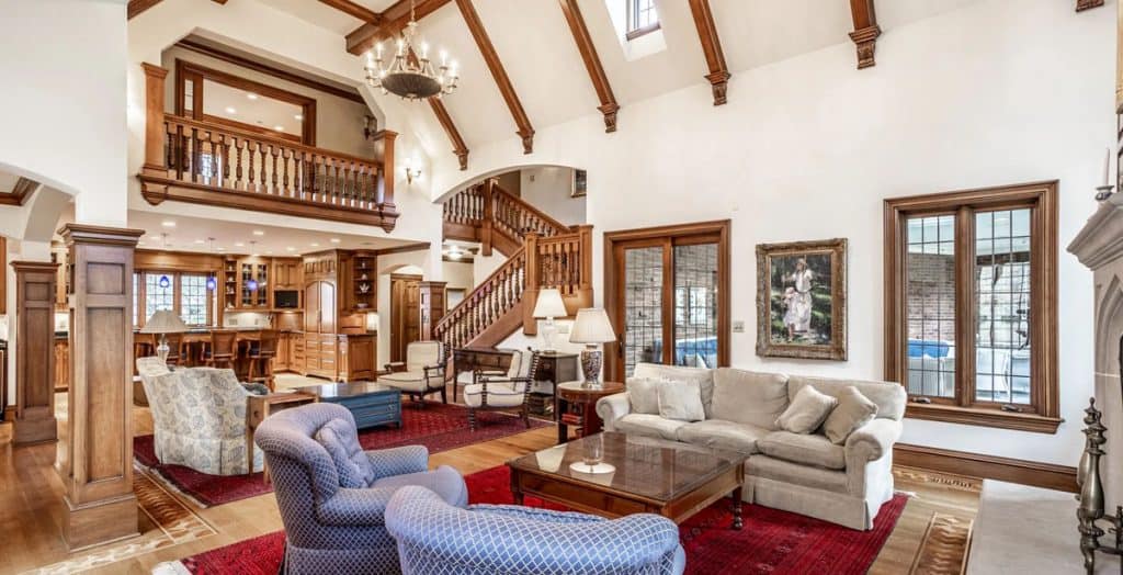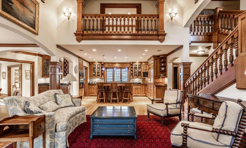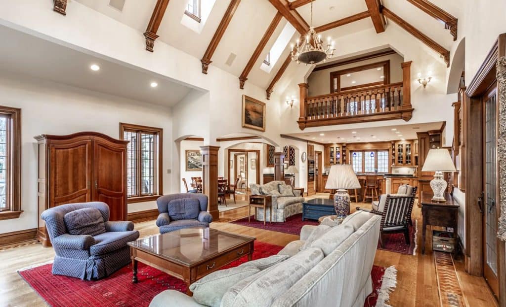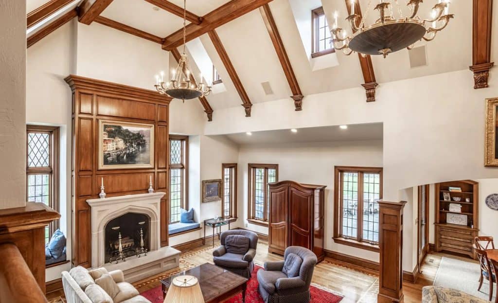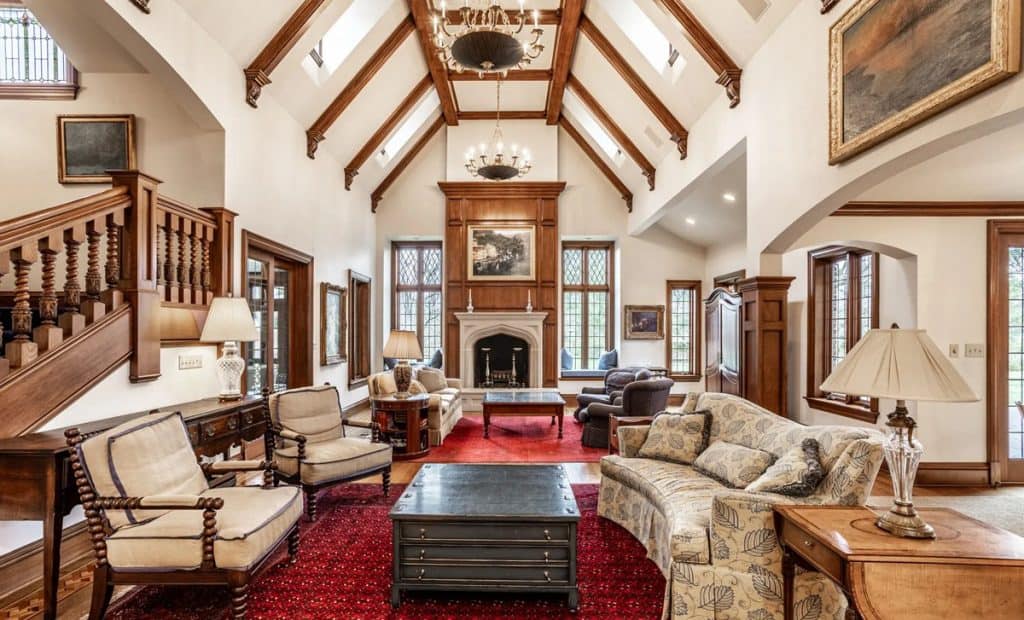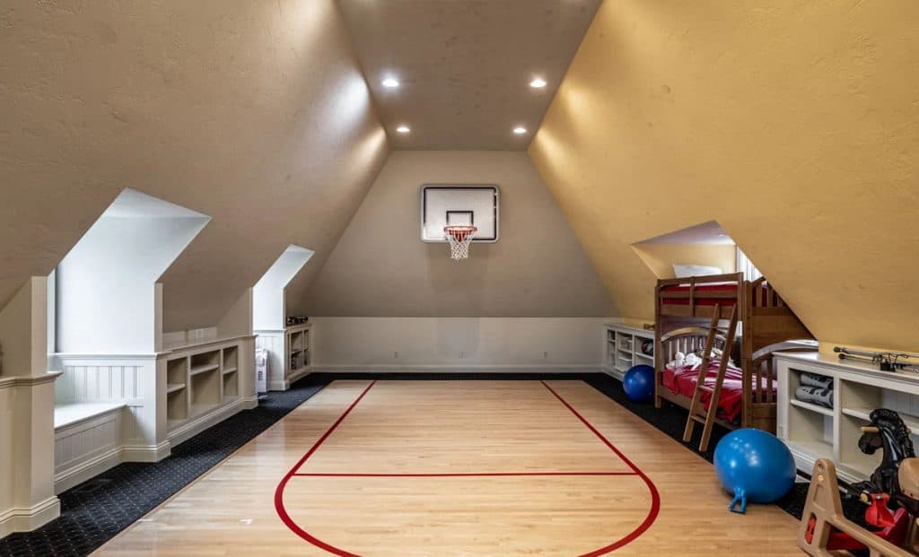 A charming approach that crosses a gently flowing creek establishes the mood for the experience that lies ahead. As you enter, the spiral staircase introduces an air of elegance, while the rich architectural features – including leaded glass windows, intricate millwork, and hand-laid hardwood inlays – foster a feeling of warmth and authenticity. Crafted for effortless indoor-outdoor living, the great room connects to a generous screened-in porch featuring a skylight and a beautifully designed patio, which includes a snug outdoor fireplace – just right for tranquil evenings spent with loved ones. A multifunctional playroom is designed for all age groups, complete with a basketball court and a special area for arts and crafts. The completed lower level offers extra space for fun, whether you’re playing pool or enjoying a movie night.