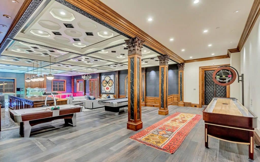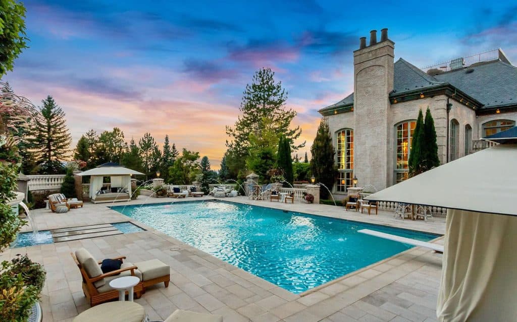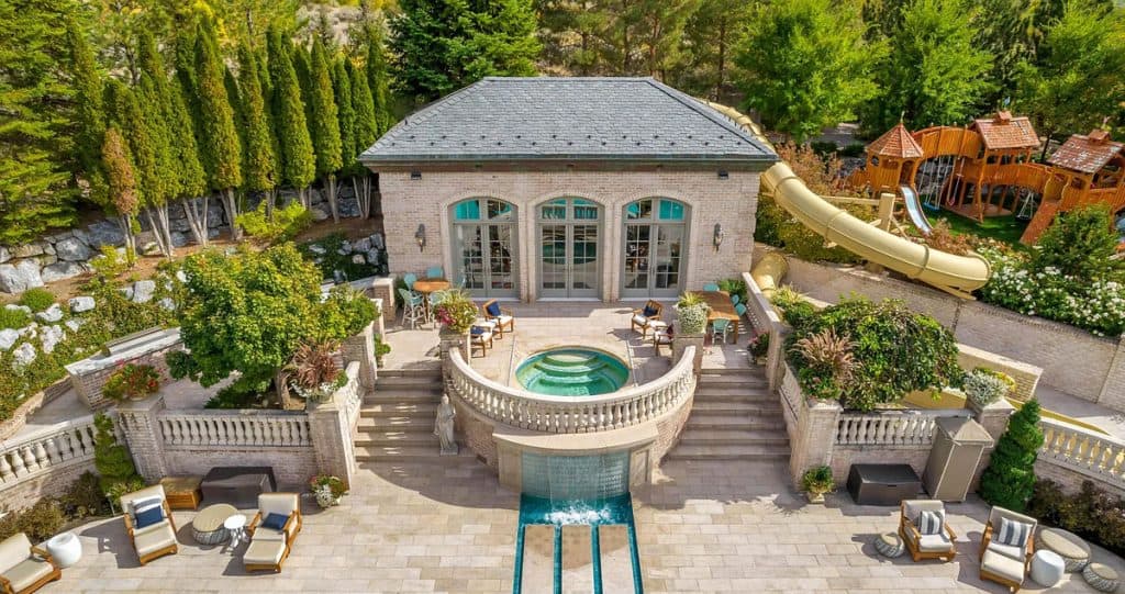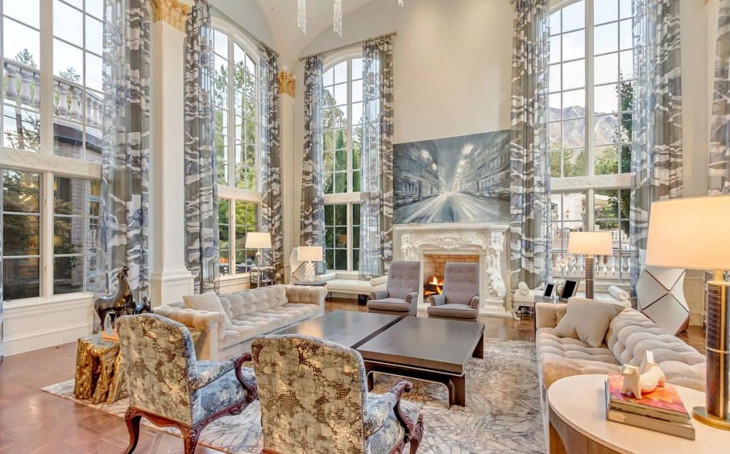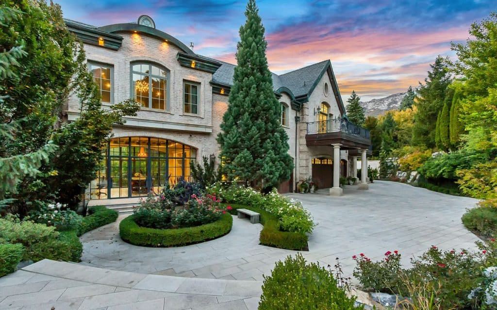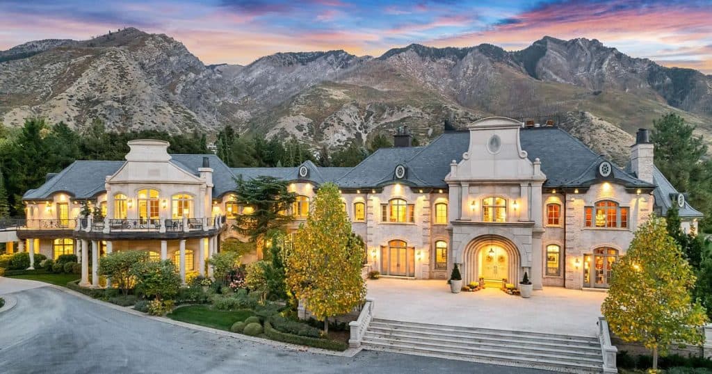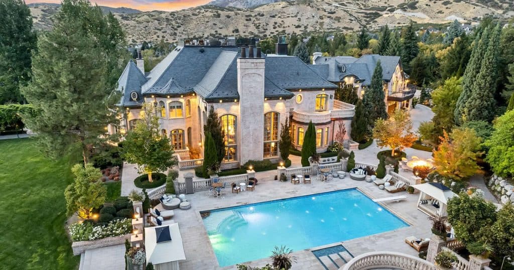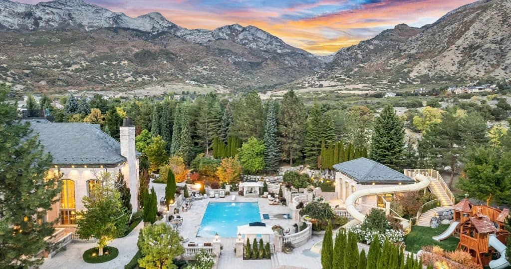 Nestled on 9.24 immaculate acres in the center of Alpine, this exclusive gated sanctuary boasts a remarkable 30,912 sq ft residence with exceptional design. Inside, lofty ceilings, artisanal details, and expansive entertaining areas foster an ambiance of elegance and warmth. There are numerous gathering spaces, including a formal dining room, a private home theater, a fully equipped gym, and much more, offering limitless possibilities for both living and entertaining. A resort-style pool and spa come with a waterslide, splash pad, and a pool house that includes its own kitchen—ideal for entertaining guests. Winding paths meander through gardens and outdoor spaces, while a rooftop deck showcases breathtaking views of the nearby mountains and Utah Valley. Other features include a complete mother-in-law suite, an indoor basketball court, and a selection of high-end finishes throughout, all carefully chosen to blend comfort, elegance, and practicality.