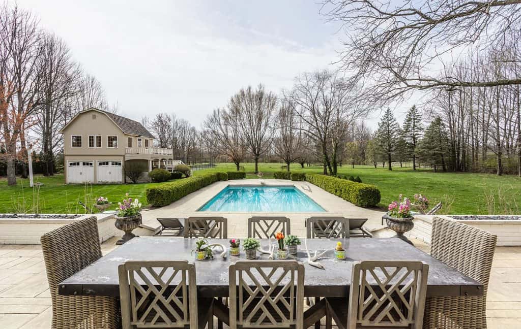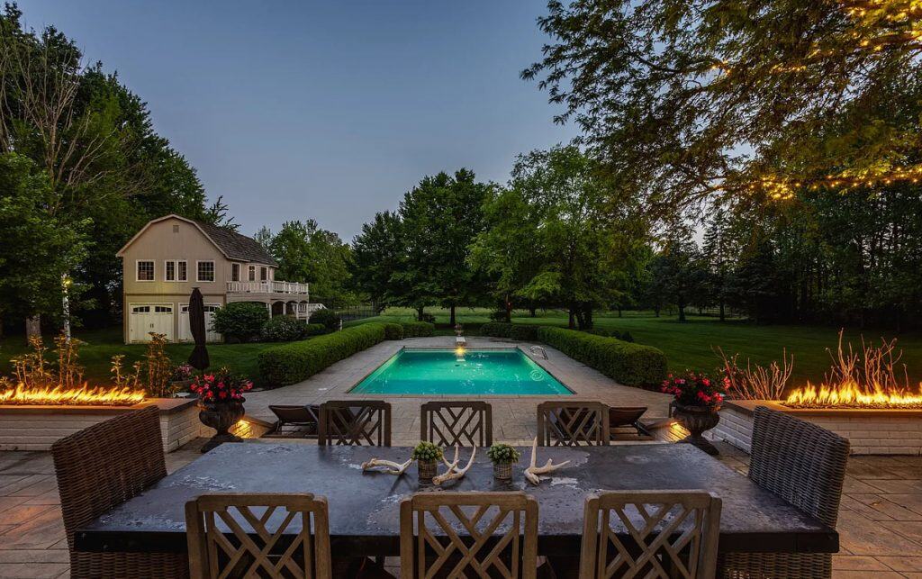 Surrounded by mature trees and featuring a tranquil pond with a fountain, this remarkable property includes a gunite pool, a tennis court, a carriage house, and ample space for a future equestrian center. A variety of door sets provide a smooth transition to the stunning outdoor living spaces. Carefully crafted for daily life, this home includes a chic mudroom equipped with a dog shower, along with a roomy laundry area on the second floor for extra convenience, plus a newly installed outdoor invisible fence. Other notable features consist of a 3-car garage attached to the house and separate garages located under the carriage house. This is genuinely a unique chance to possess a private estate that merges elegant living with resort-like amenities!