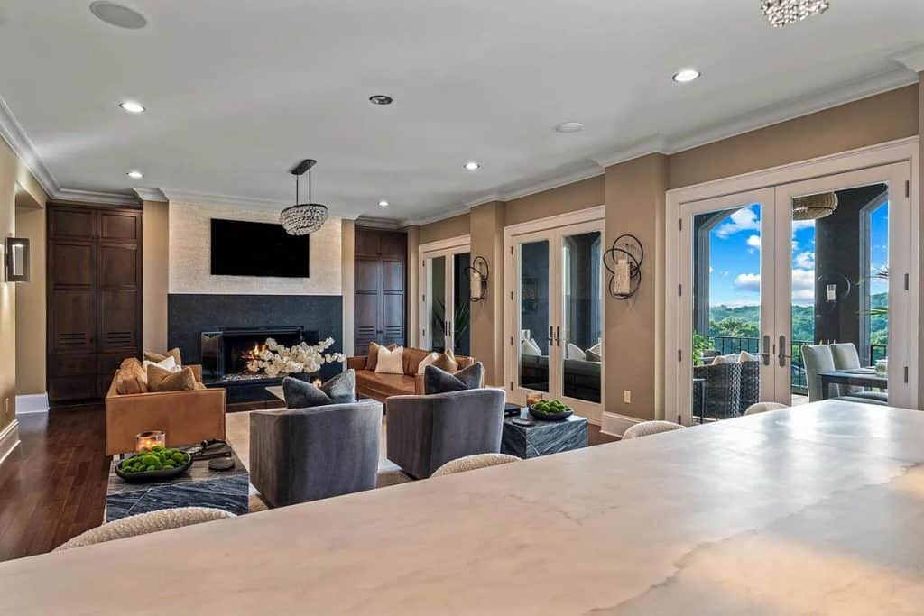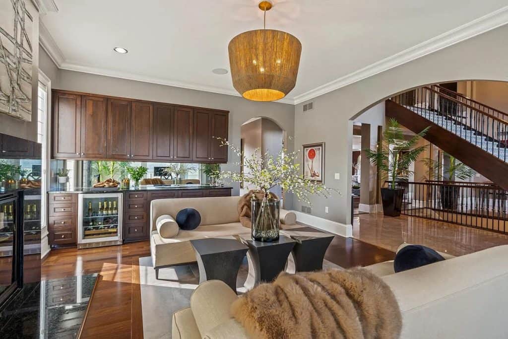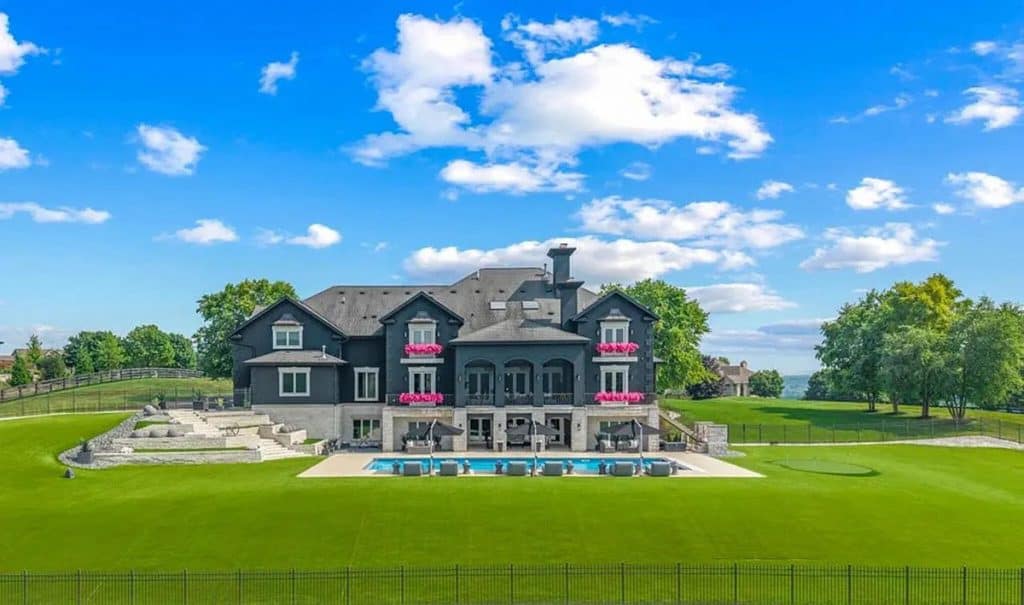The home showcases luxurious features and finishes throughout. Enjoy a fully fenced, turfed backyard complete with an in-ground pool that has an automatic cover, a putting green, a covered loggia, and a terrace equipped with motorized phantom screens. There are 6 elegant chandeliers, an outdoor TV, and a cozy fireplace. The multigenerational walkout lower level includes a full kitchen, dining area, living space, laundry, a spacious bedroom, 1.5 bathrooms, and an indoor sports court. Additionally, there are 5 ensuite bedrooms, each with custom walk-in closets, an Italian marble kitchen featuring Wolf double ovens, a Subzero refrigerator and freezer, a custom black rift oak pantry, and 2 powder rooms on the first floor. The home also boasts 4 granite slab fireplaces, a first-floor home theater, an elevator, and a 500 square foot primary closet with a 10-foot island and an attached laundry room. Plus, there’s a heated garage that accommodates 4.5 cars, and so much more!