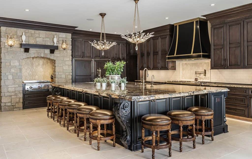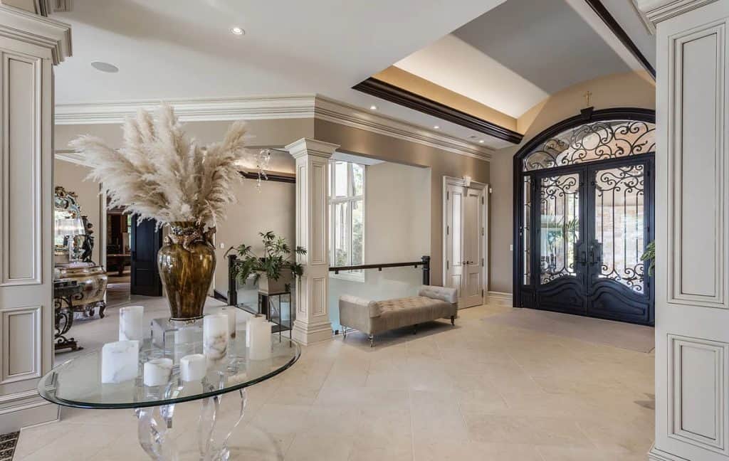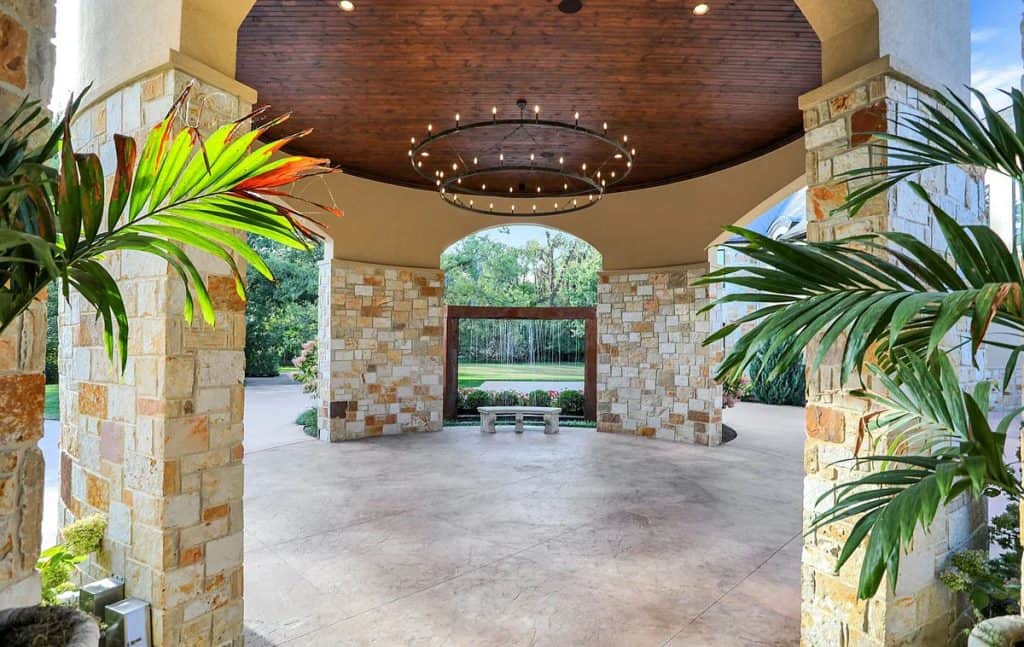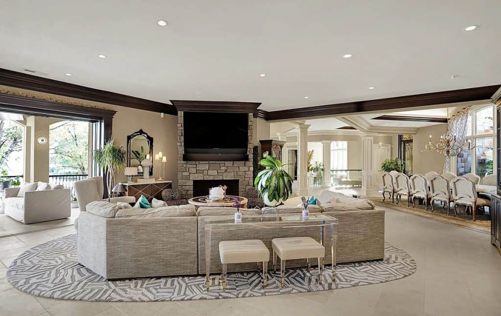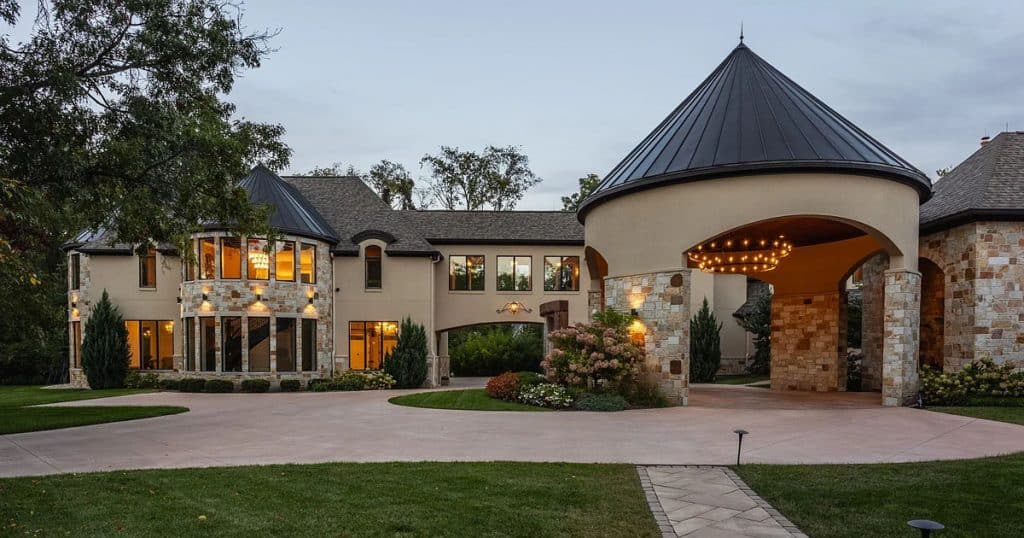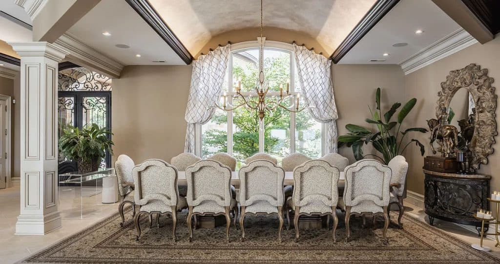 The main level reveals stunning views from every gathering area, including a cozy fireside study that opens up to the estate lounge complete with a bar, billiards area, and comfortable sitting rooms. The culinary area features two kitchens: a hidden caterer’s kitchen just steps from the main one, equipped with commercial-grade appliances, a 14′ island, and a smooth transition to a 38′ heated veranda that includes a grilling area, retractable screens, and expansive lake views. The walkout level designed like a resort boasts a 15-seat bar, a wine cellar with 700 bottles, a theater, an arcade, a billiards room, a fitness studio, 4 bedrooms, 5 bathrooms, and 4 exits to the outside. The outdoor area showcases a 50-foot gunite pool complete with a slide, a jacuzzi, waterfalls, fire features, several patios, a play cottage for children equipped with HVAC, and a 50-foot boat dock with three slips.